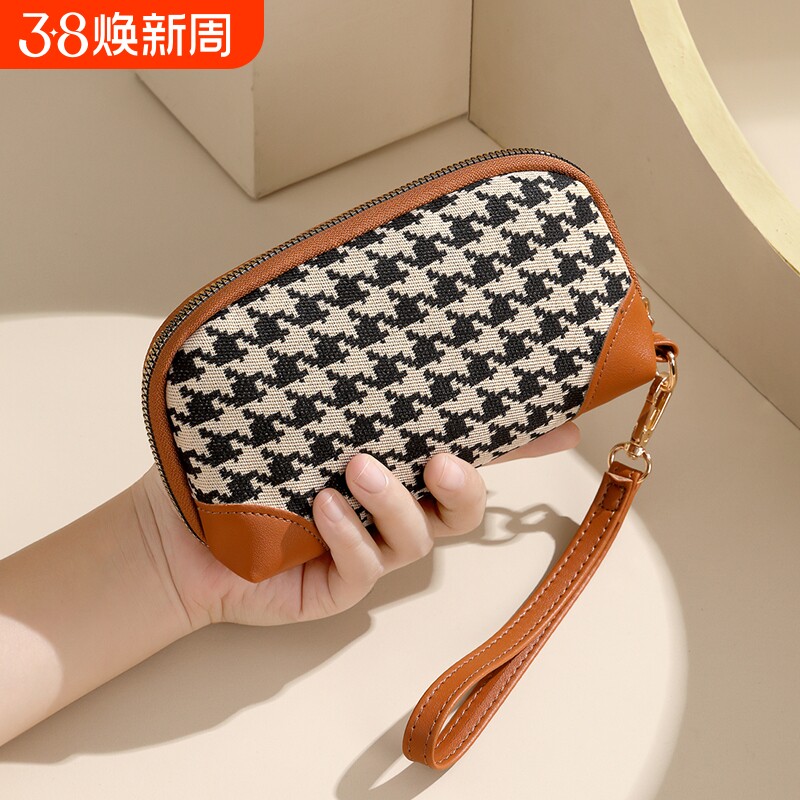 千鸟格新款钱包大容量2025时尚高档手拿包长款女士可放手机零钱包