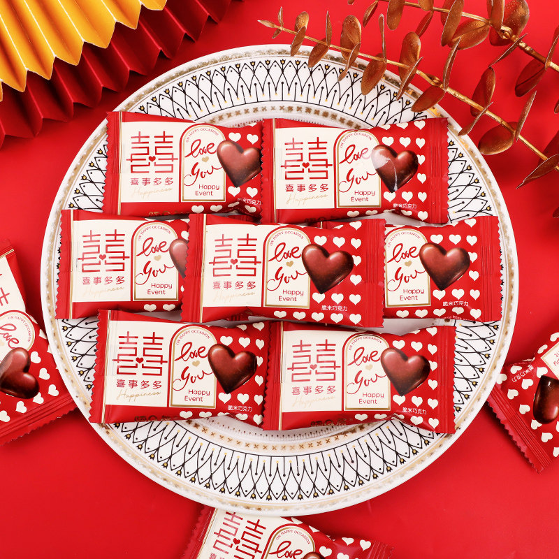 喜事多多心形脆米巧克力结婚喜糖专用订婚糖果婚礼小零食散装