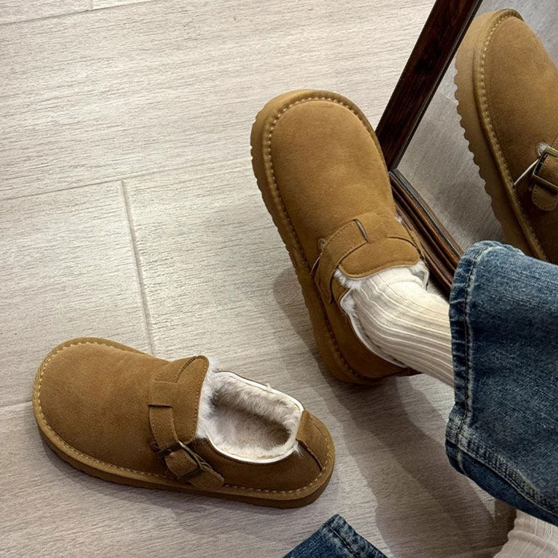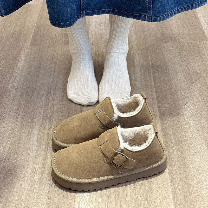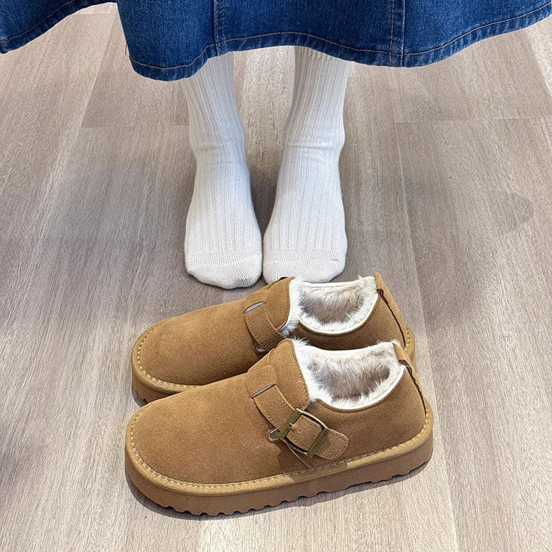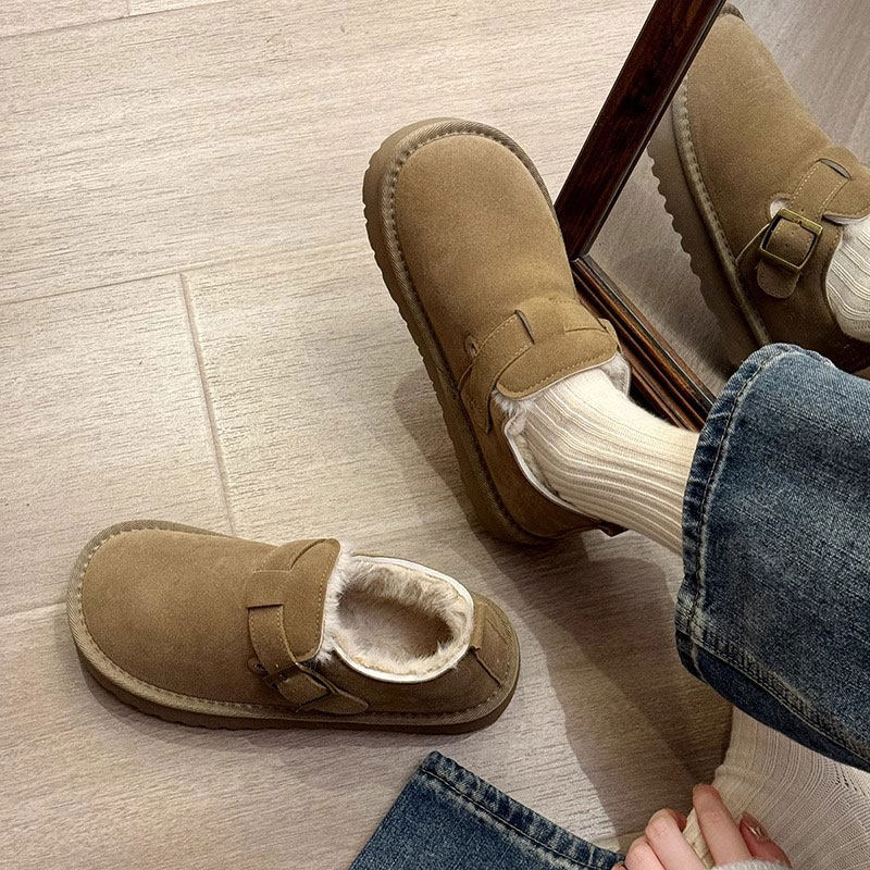 平底勃肯鞋女加绒保暖雪地靴女2025新款冬季乐福鞋豆豆鞋博肯棉鞋