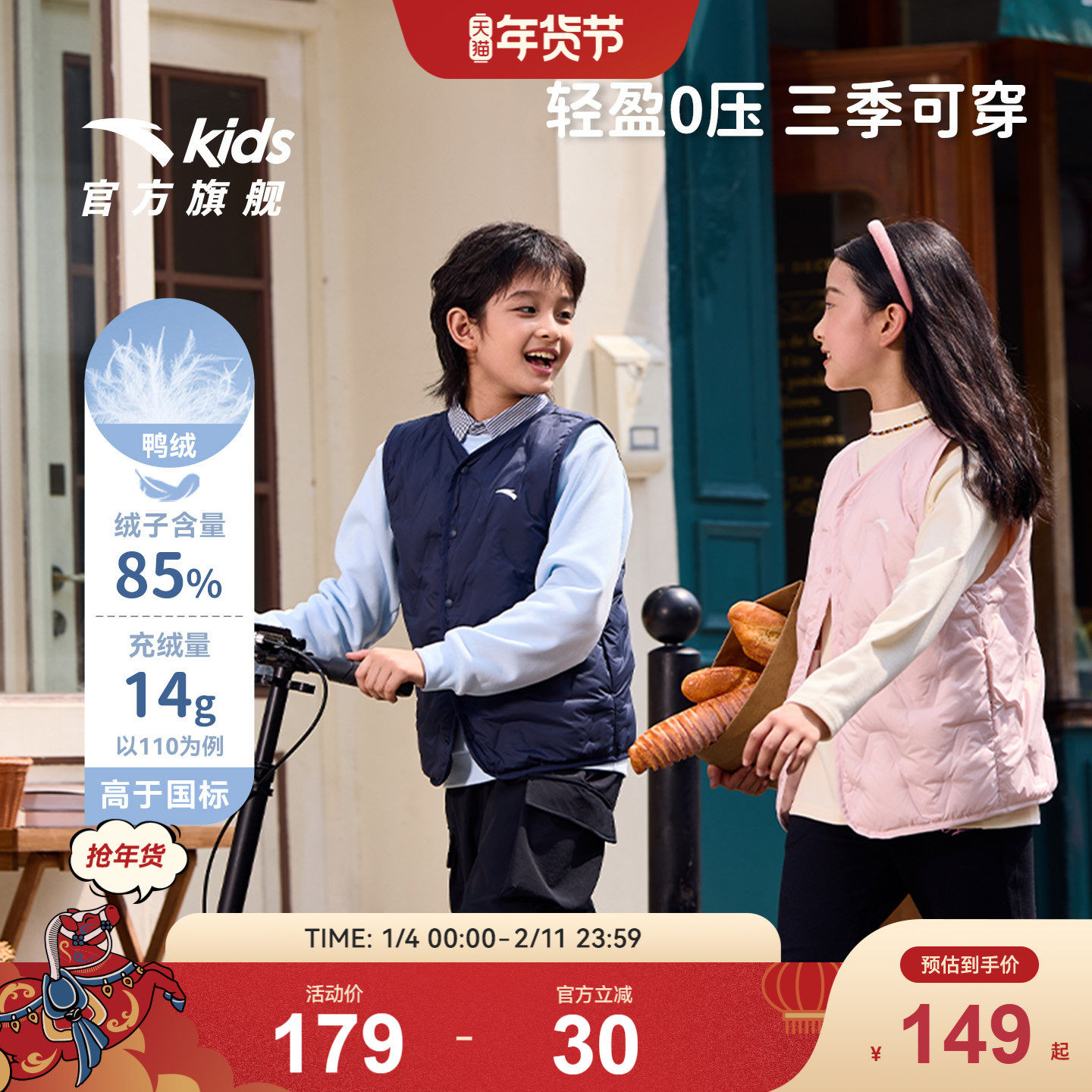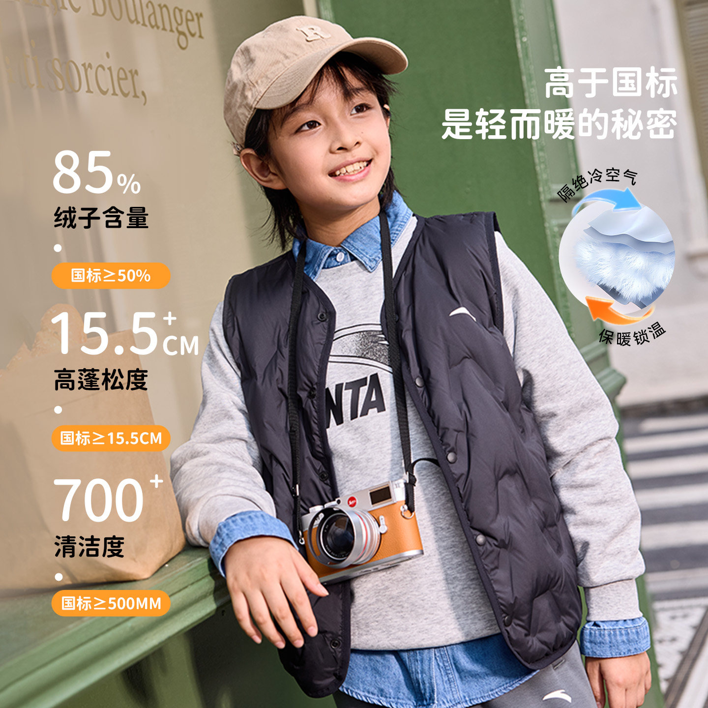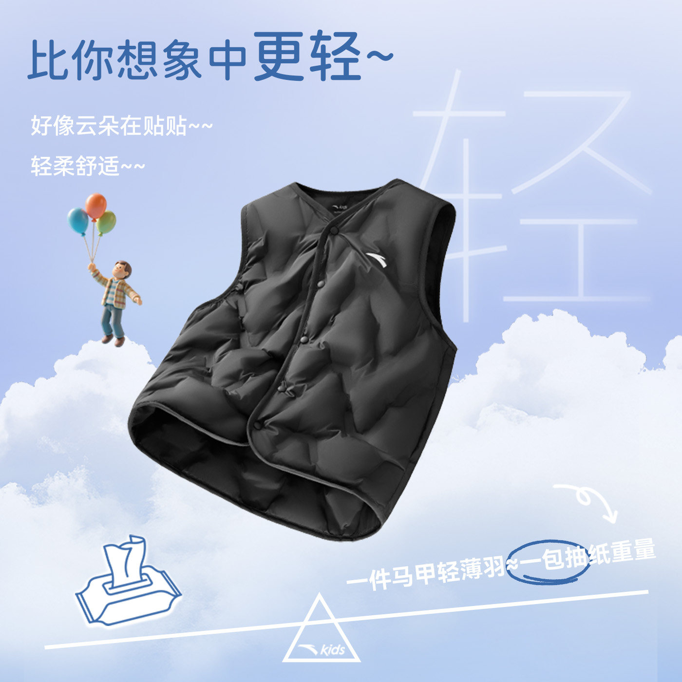 安踏儿童男女童轻薄羽绒马甲2025冬季新款舒适保暖中大童运动马甲