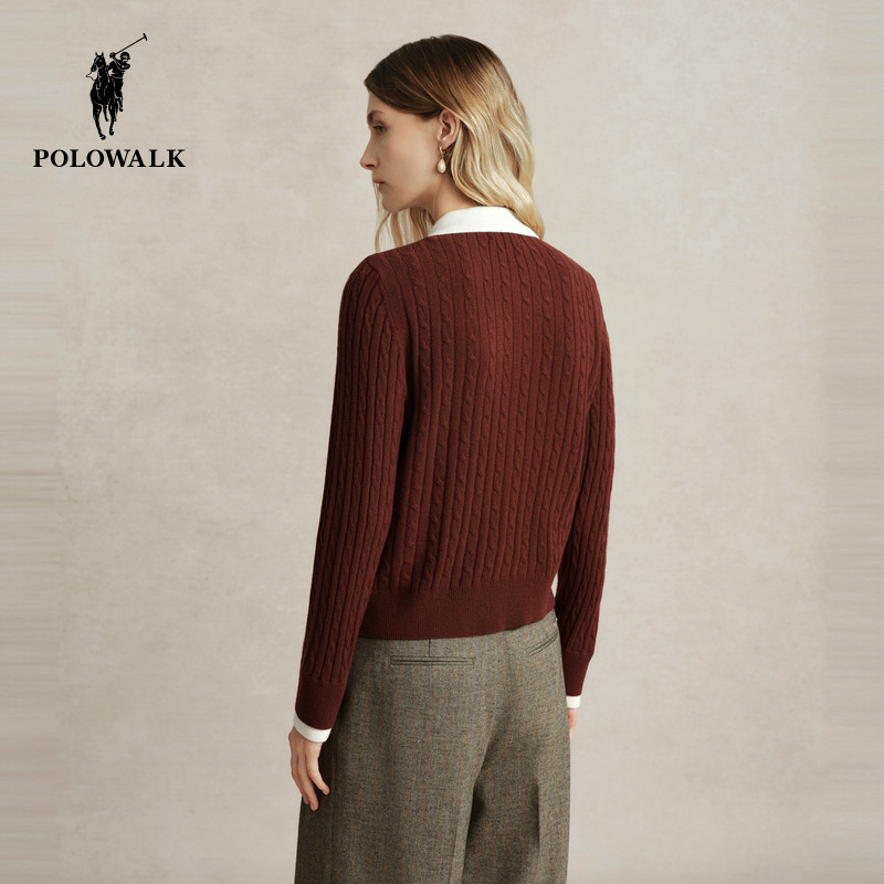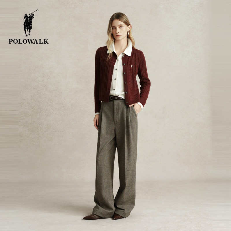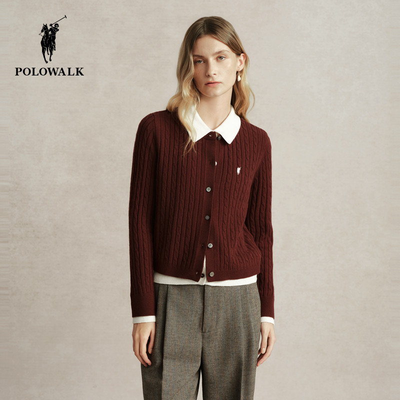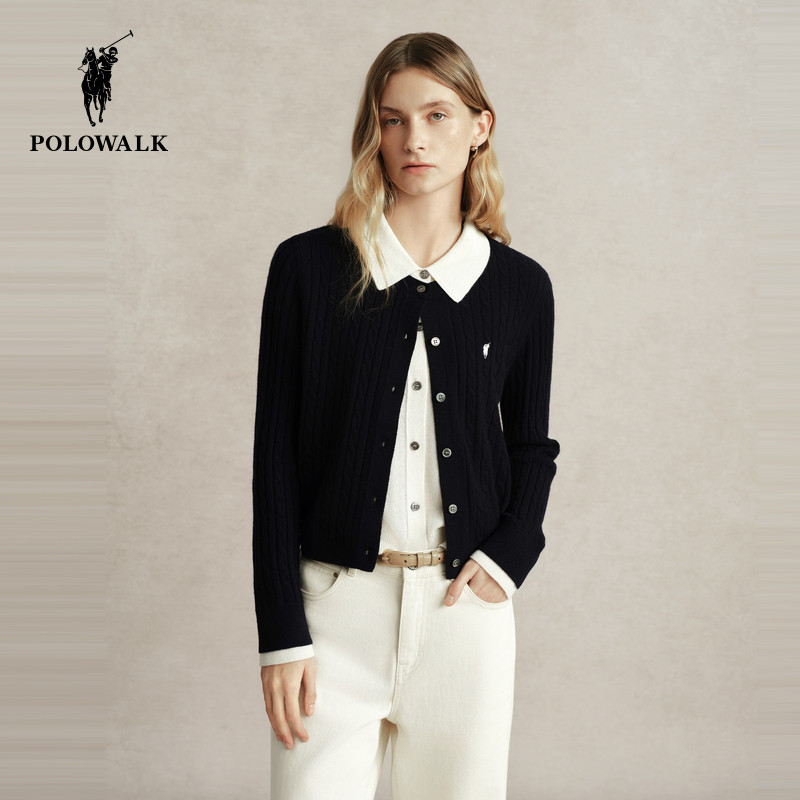 【100%绵羊毛】POLOWALK羊毛衫女士秋冬新款百搭质感薄款开衫毛衣