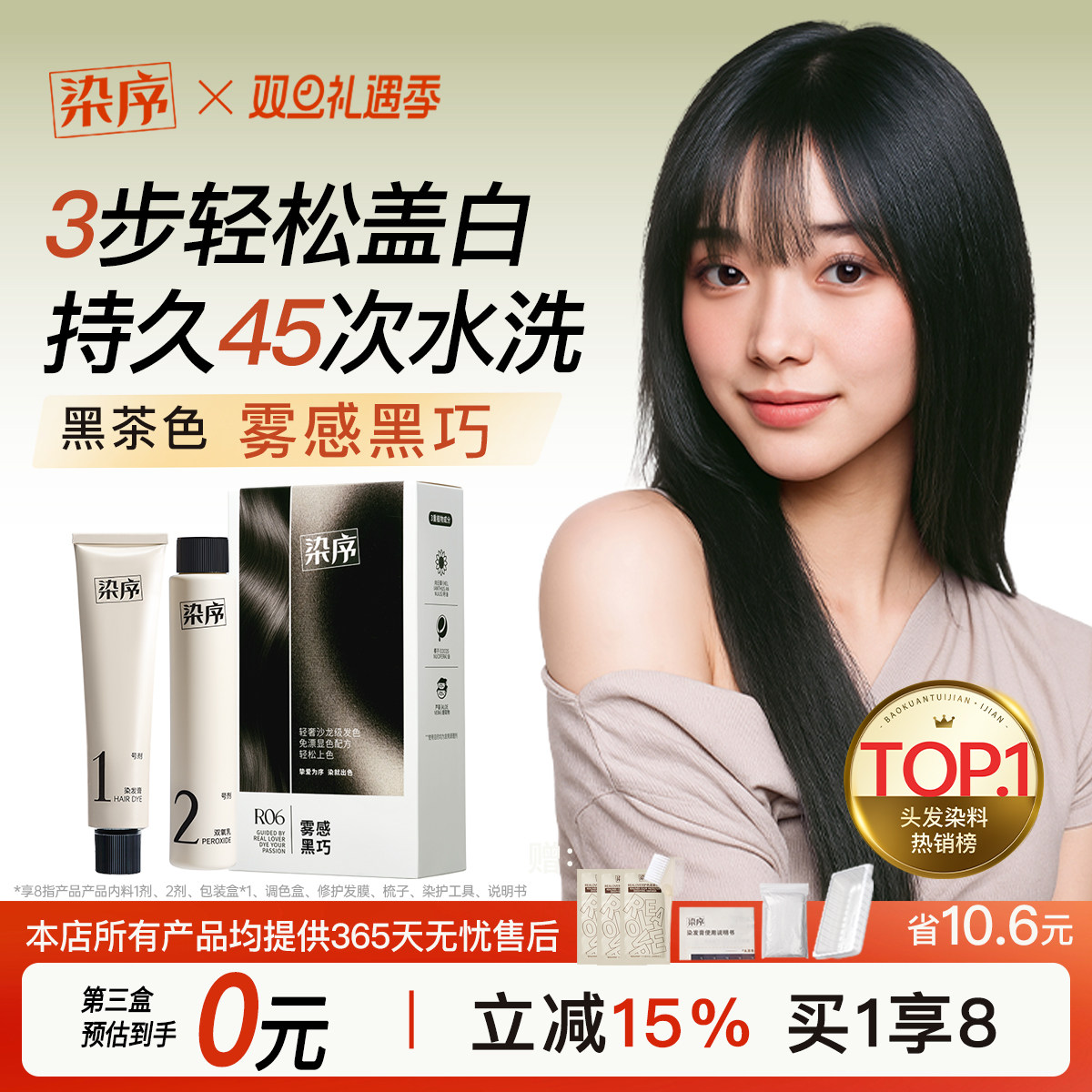 润丝丹染发剂黑茶色女泡泡遮白无刺激正品官方植物纯自己在家染发