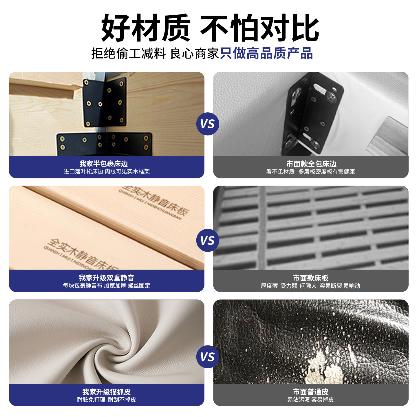 全实木无床头床架榫卯静音悬浮床小户型齐边排骨架床架可定制尺寸