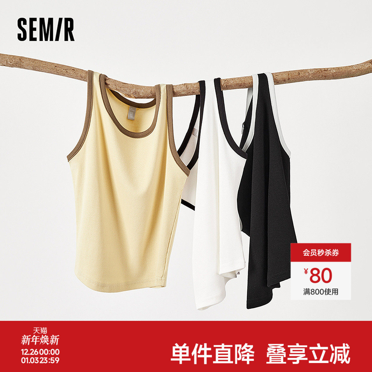 森马背心女短款圆领内搭小个子简约风夏季气质撞色紧身套头衫显瘦