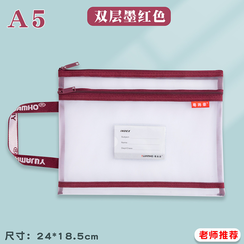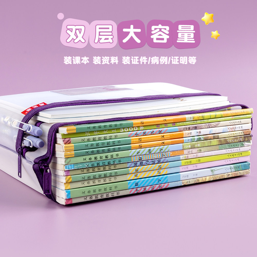 B4尼龙网纱双层文件袋带标签卡位A4/B5/A5学生科目分类试卷收纳袋