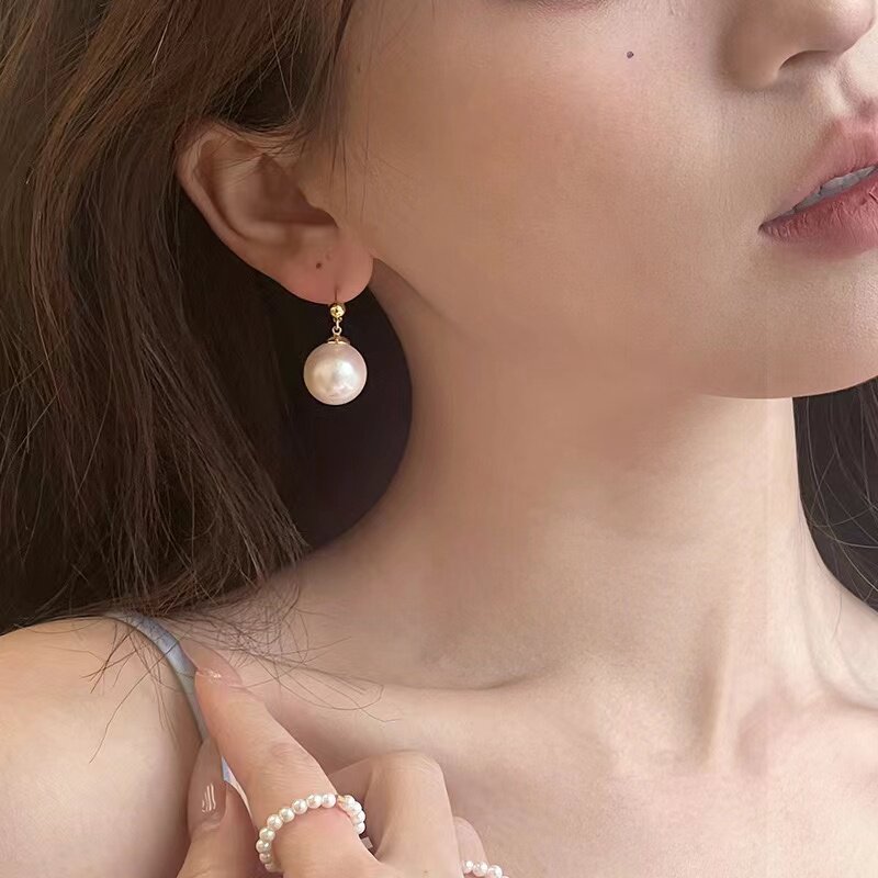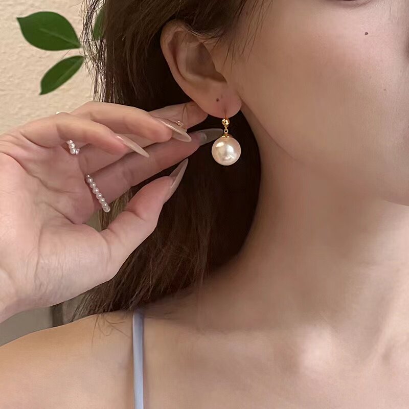 人鱼姬珍珠耳环女999纯银耳钉小众梦幻轻奢正圆法式高级感大耳饰