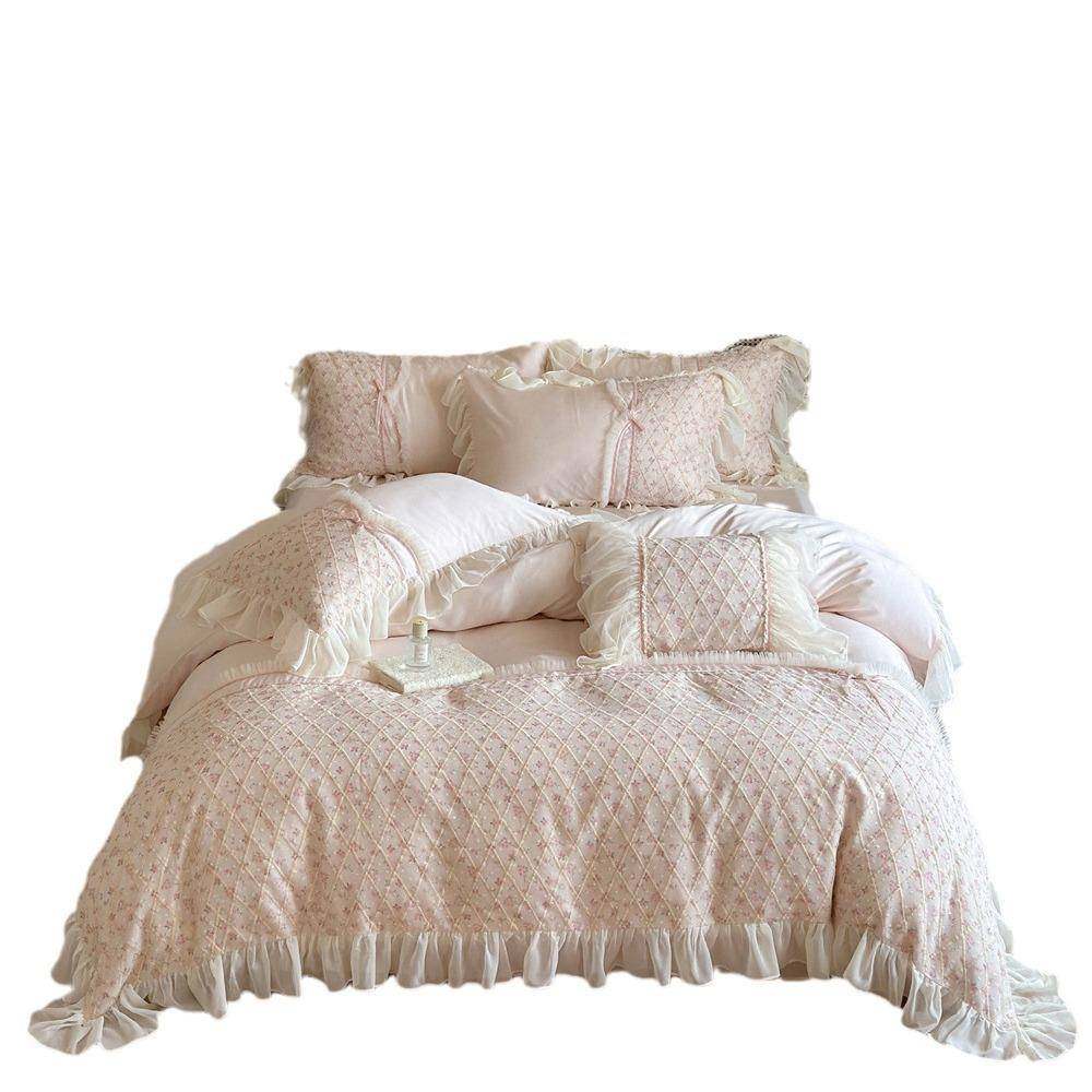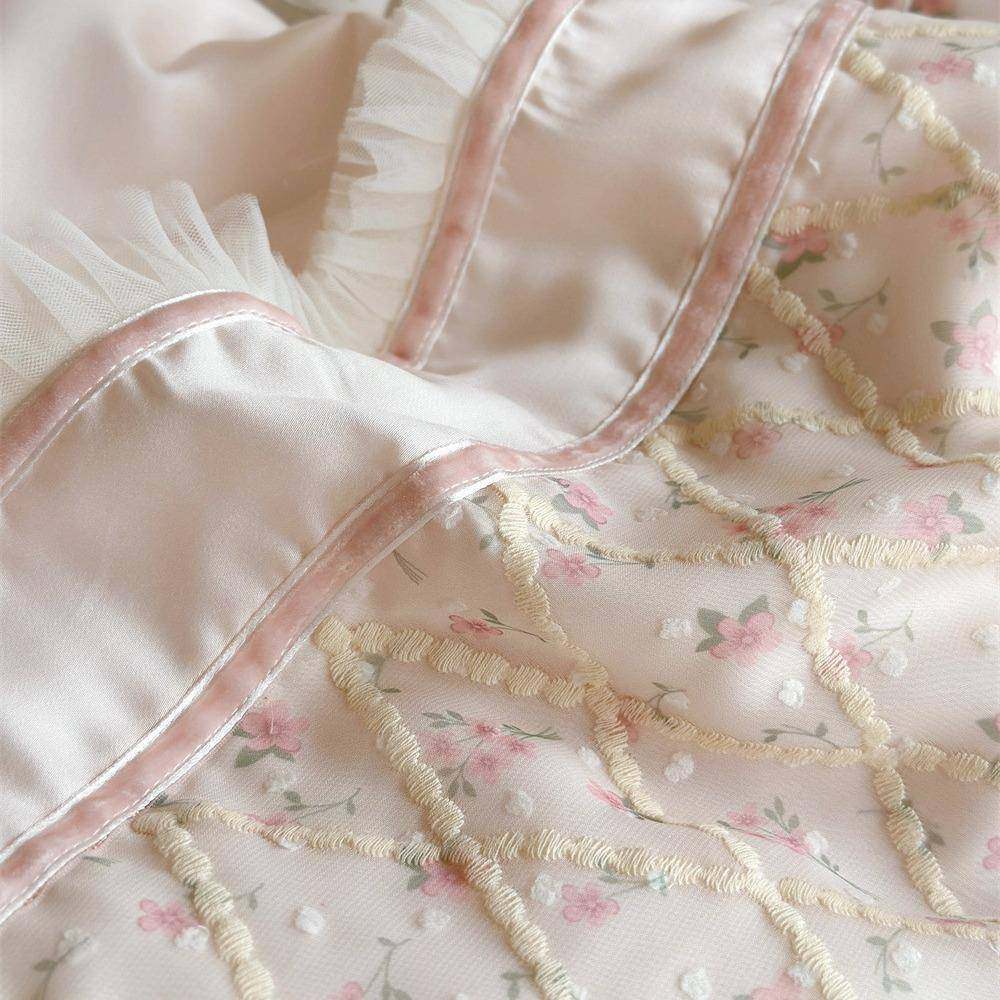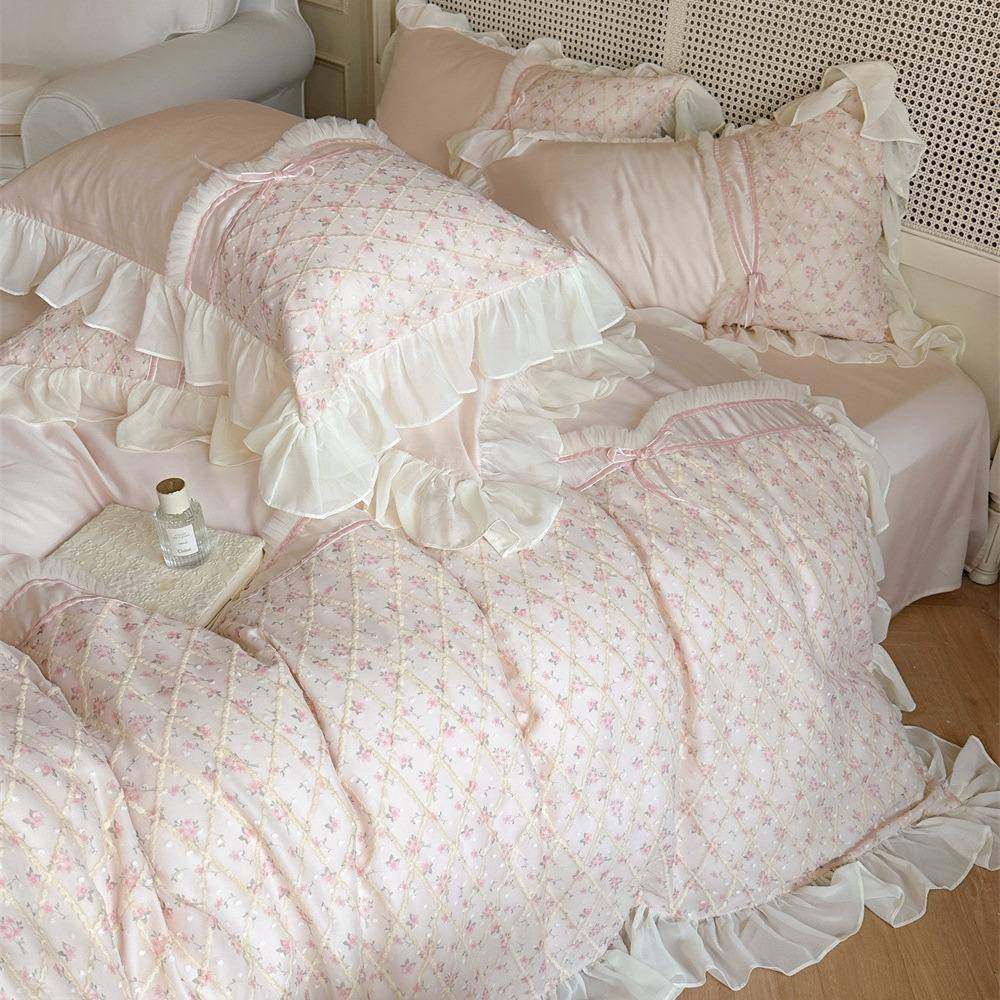 夏季冰丝凉感天丝四件套温柔小碎花刺绣花边被套公主风床品
