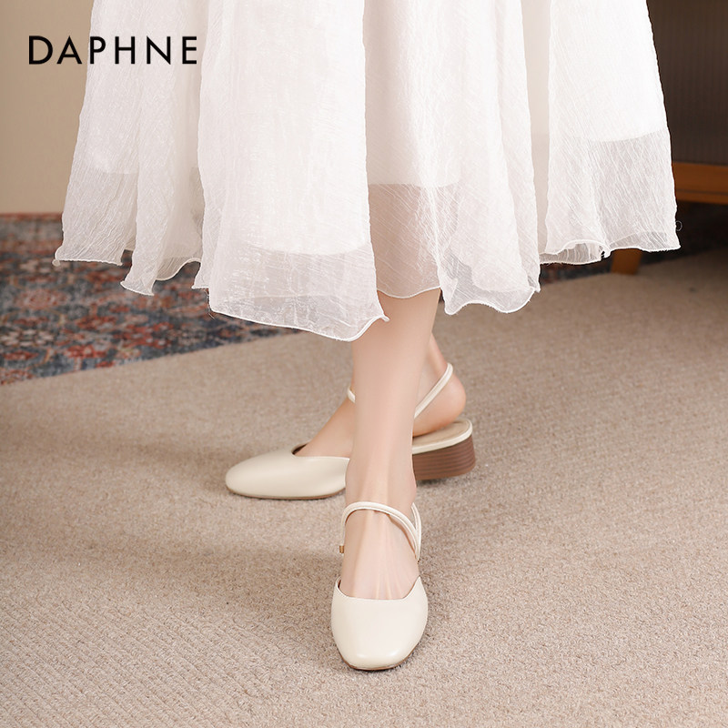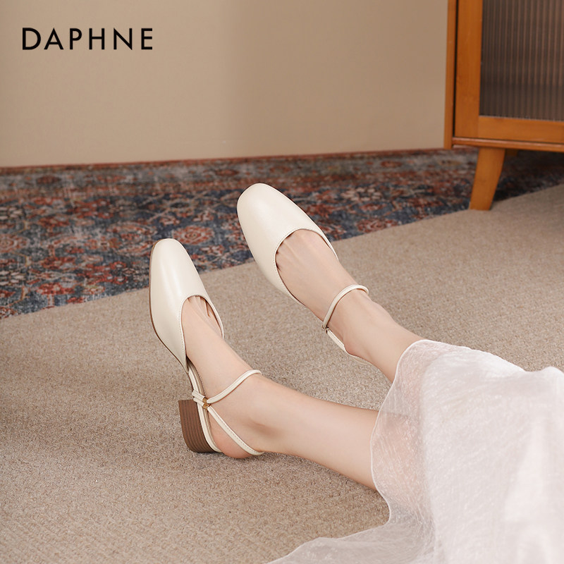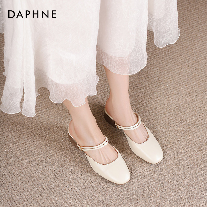 达芙妮包头半拖鞋女2024新款夏季法式配裙子凉鞋粗中跟两穿拖鞋女