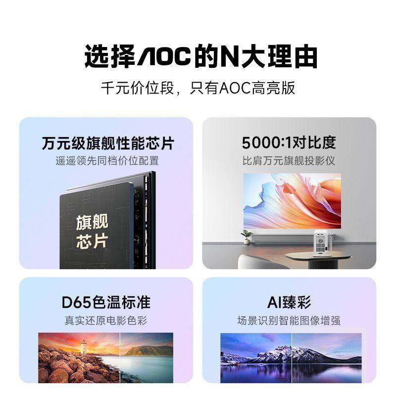 AOC T6Plus解码8K投影仪家用1080P超高清投墙卧室床头客厅家庭影院可连手机投屏白天直投云台一体机2025新款