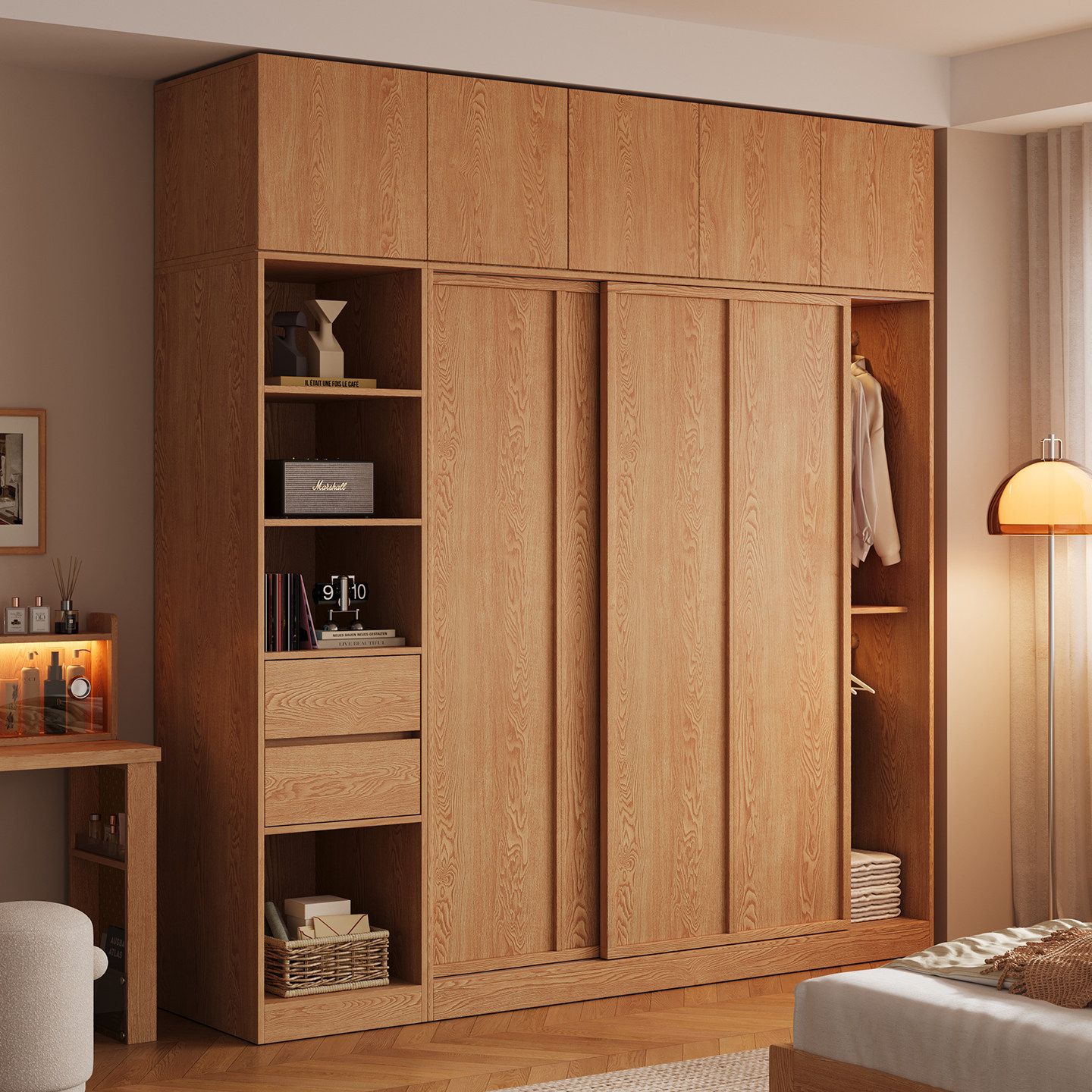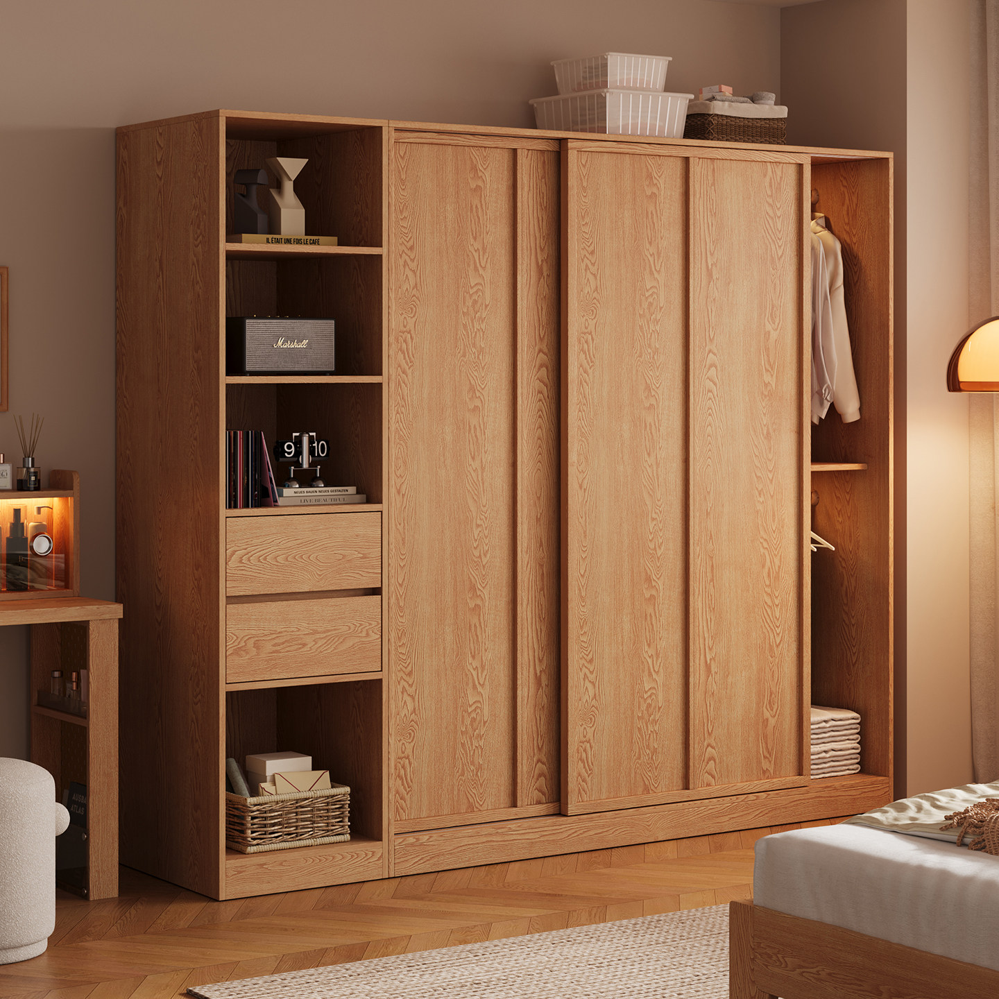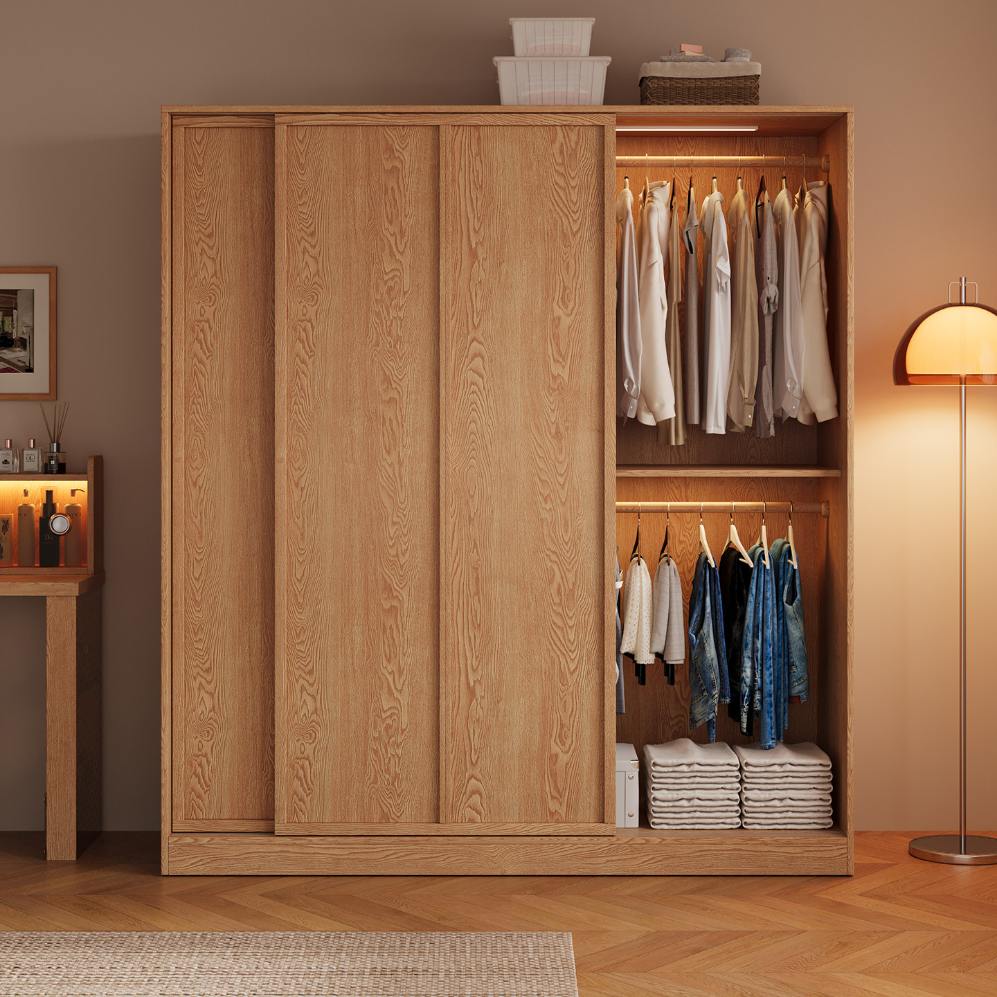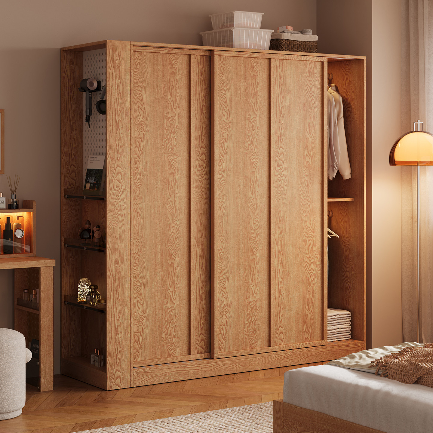 木兜家具袋鼠衣柜实木卧室原木风推拉门衣橱家用落地衣服收纳柜子