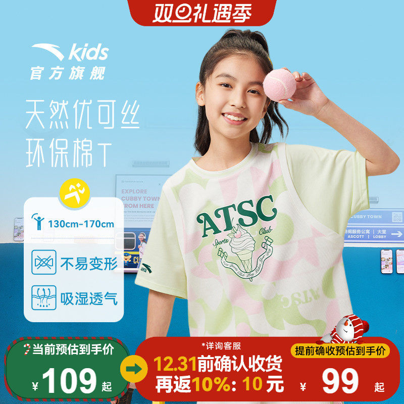 商场同款|安踏儿童短袖T恤女童篮球服2025夏季新款宽松运动上衣潮
