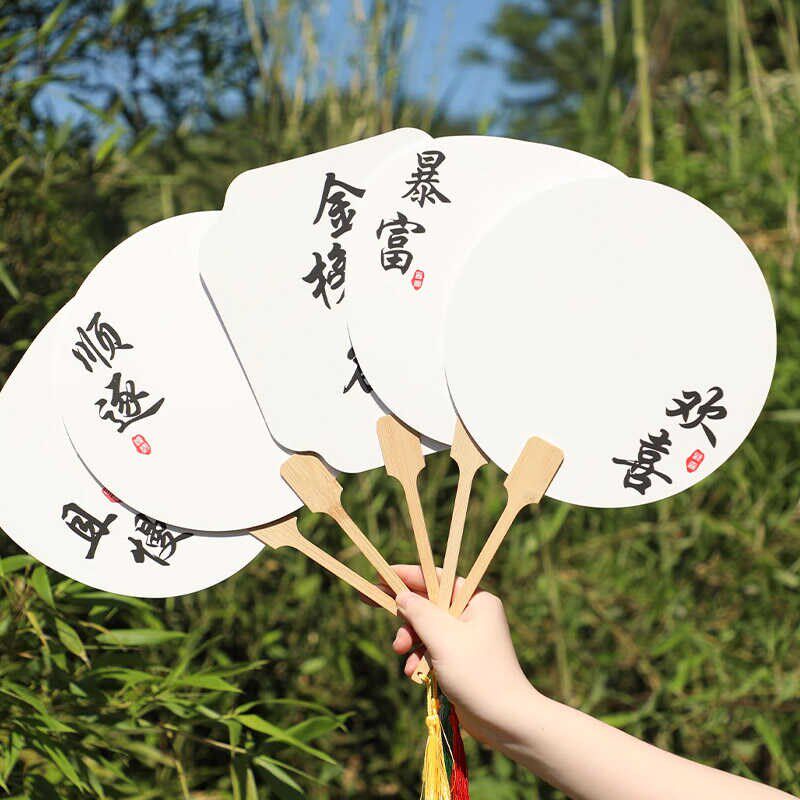 带字漆扇材料包漂漆专用r扇子非遗古风diy制作颜料空白宣纸团扇