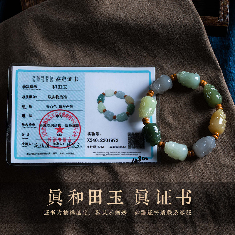 设计师独家款!正品和田玉貔貅手串多宝色原创文玩手链男女本命年