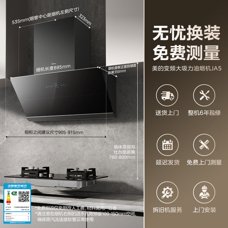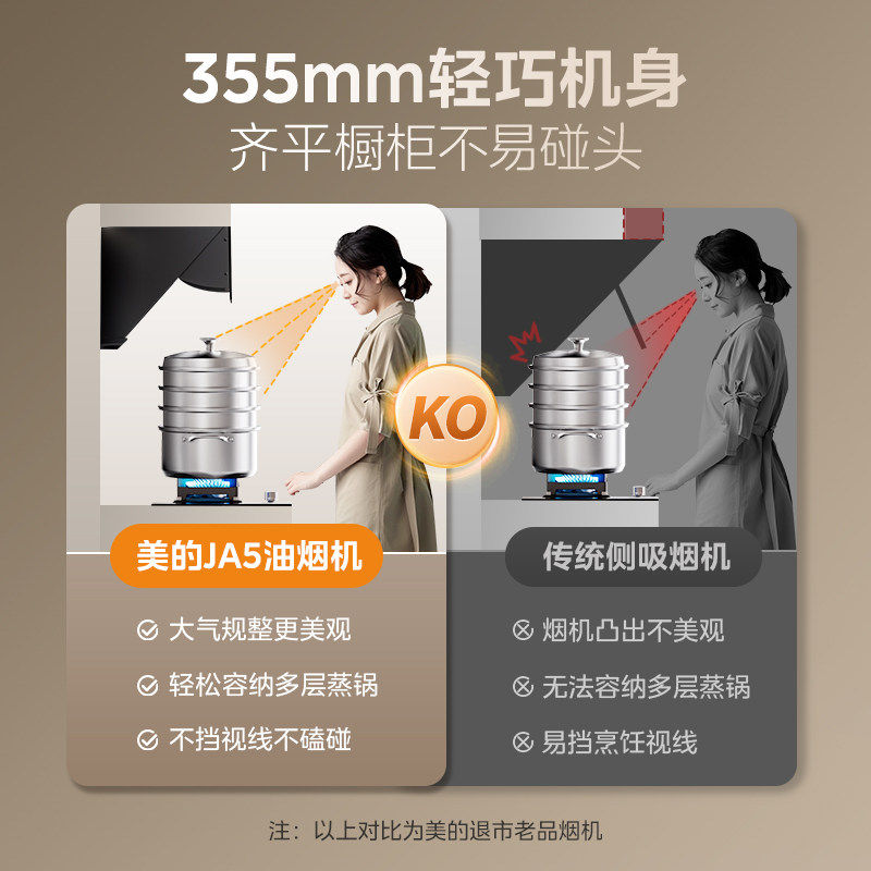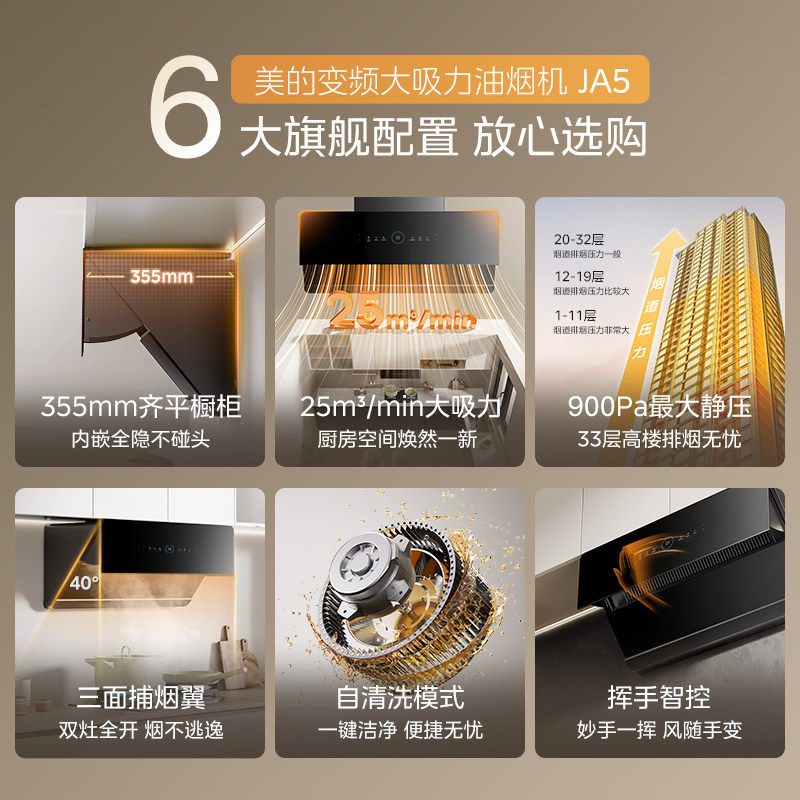美的侧吸抽油烟机家用厨房大吸力挥手吸油烟机变频JA5
