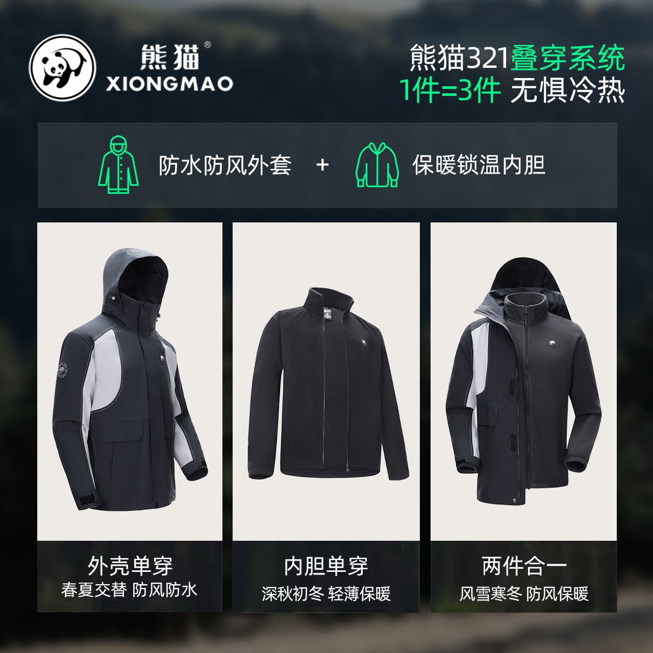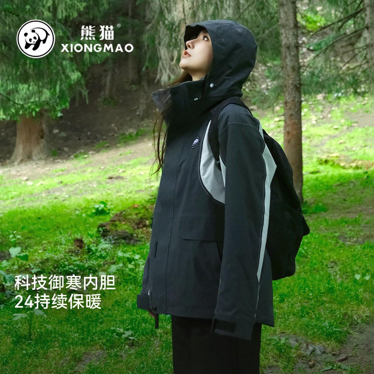 熊猫联名骆驼女装冲锋衣外套女三合一秋冬2025新款防风防水登山服