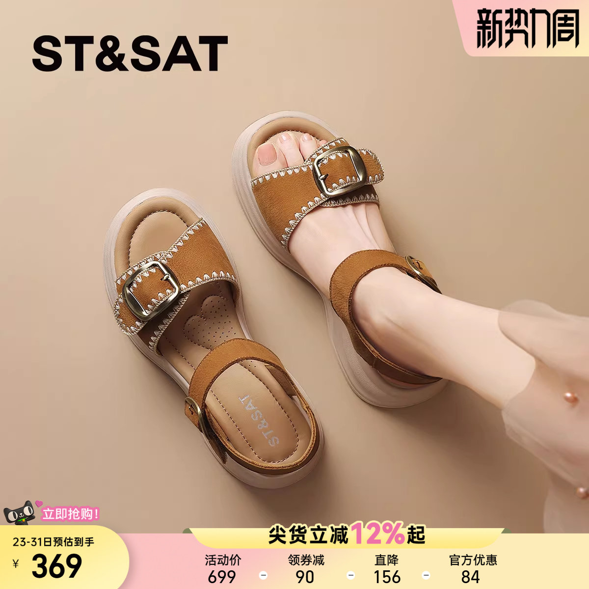 星期六复古棕色牛皮厚底增高凉鞋女2026夏季新款百搭罗马凉鞋单鞋
