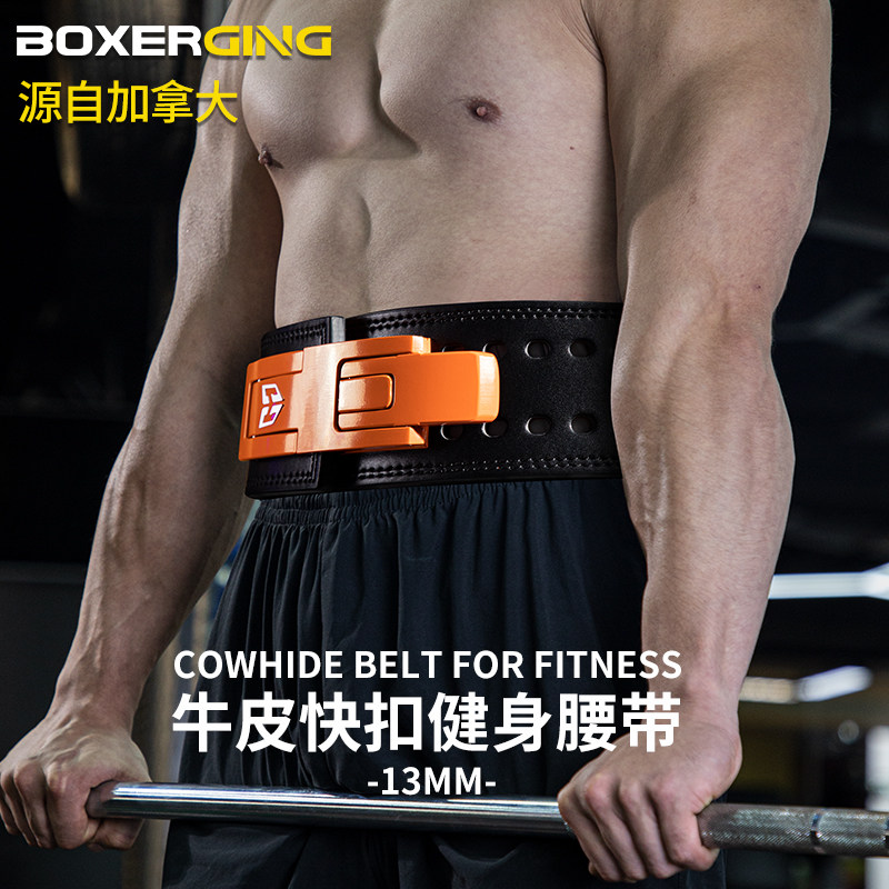 快扣腰带健身专业力量举重深蹲硬拉牛皮护腰男女士抓挺举器械护具