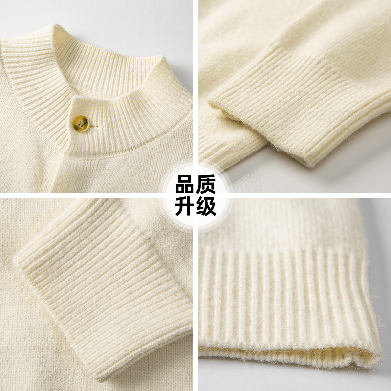 NEVERNEED亨利领套头毛衣男秋冬季美式慵懒风含绵羊毛针织衫外套