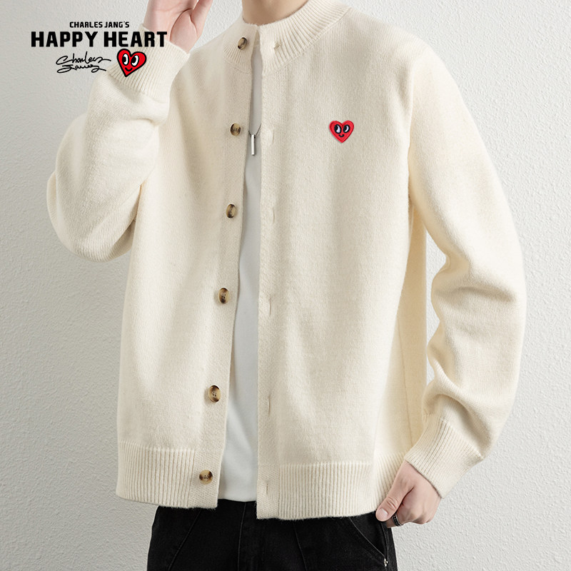 查尔斯桃心 琥珀单排扣情侣爱心纯色休闲百搭针织开衫卫衣外套男