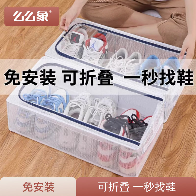 鞋盒鞋子收纳神器省空间鞋架鞋柜放靴子鞋托床底可折叠收纳盒透明