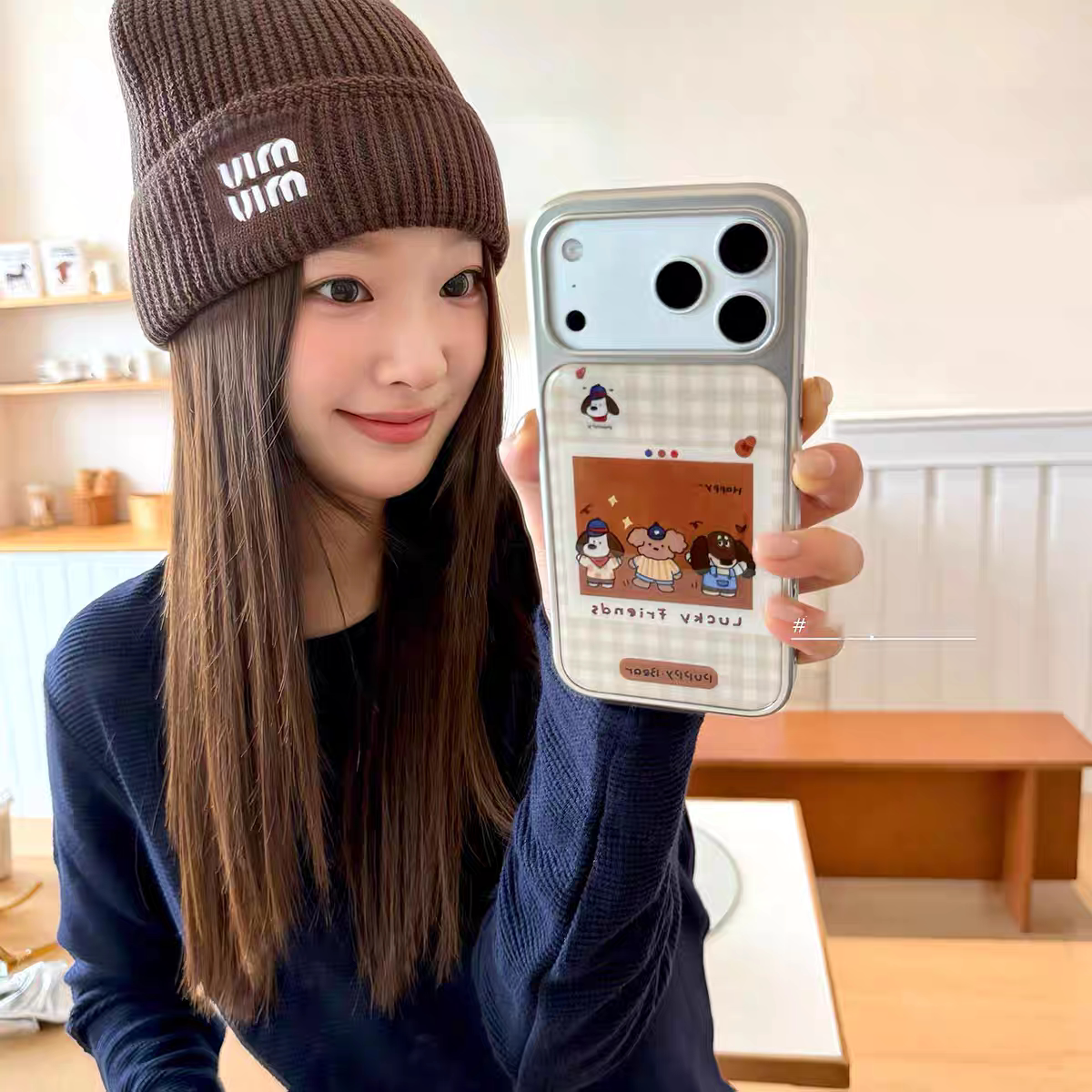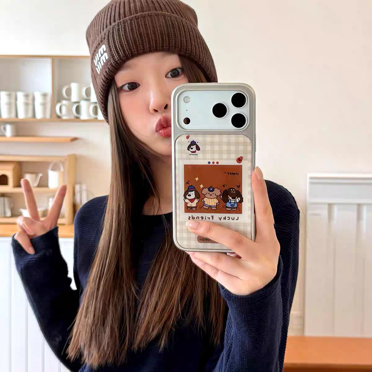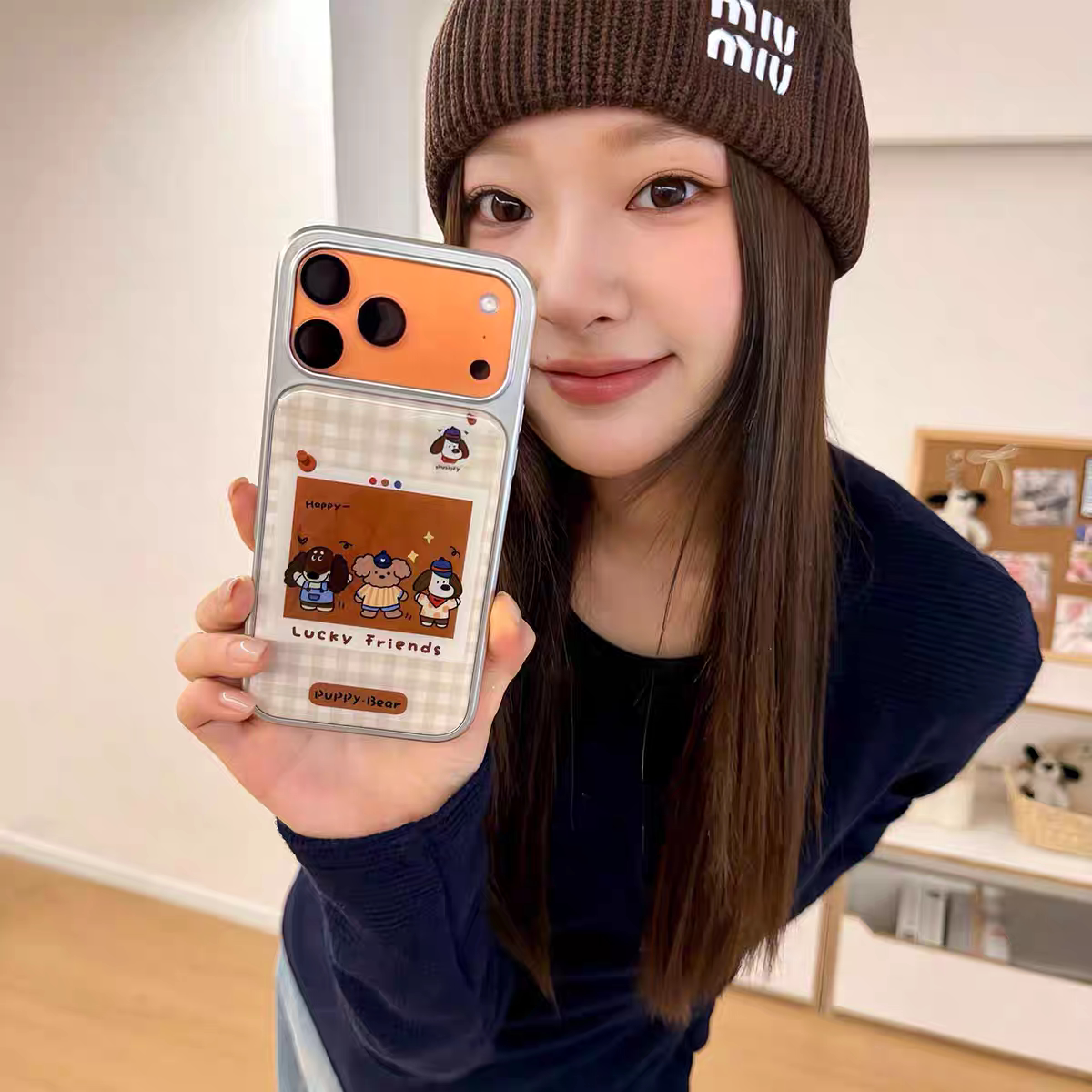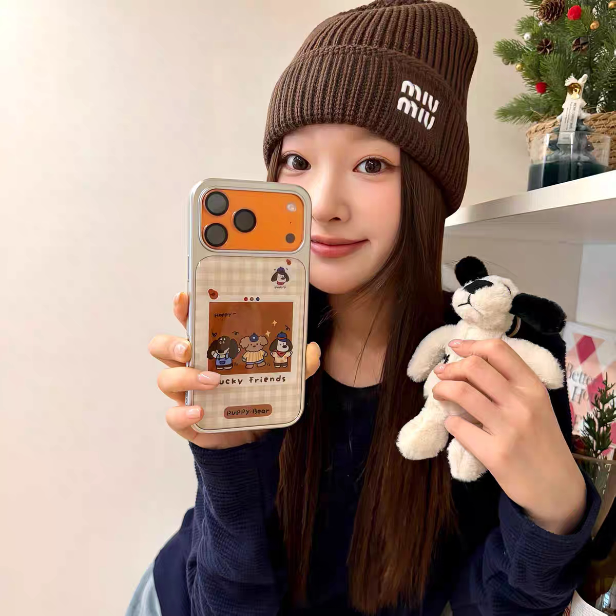ins风可爱栗子棕格纹小狗适用苹果17promax滴胶手机壳iphone16pro新款1314pro创意15pro全包防摔手机套高级感