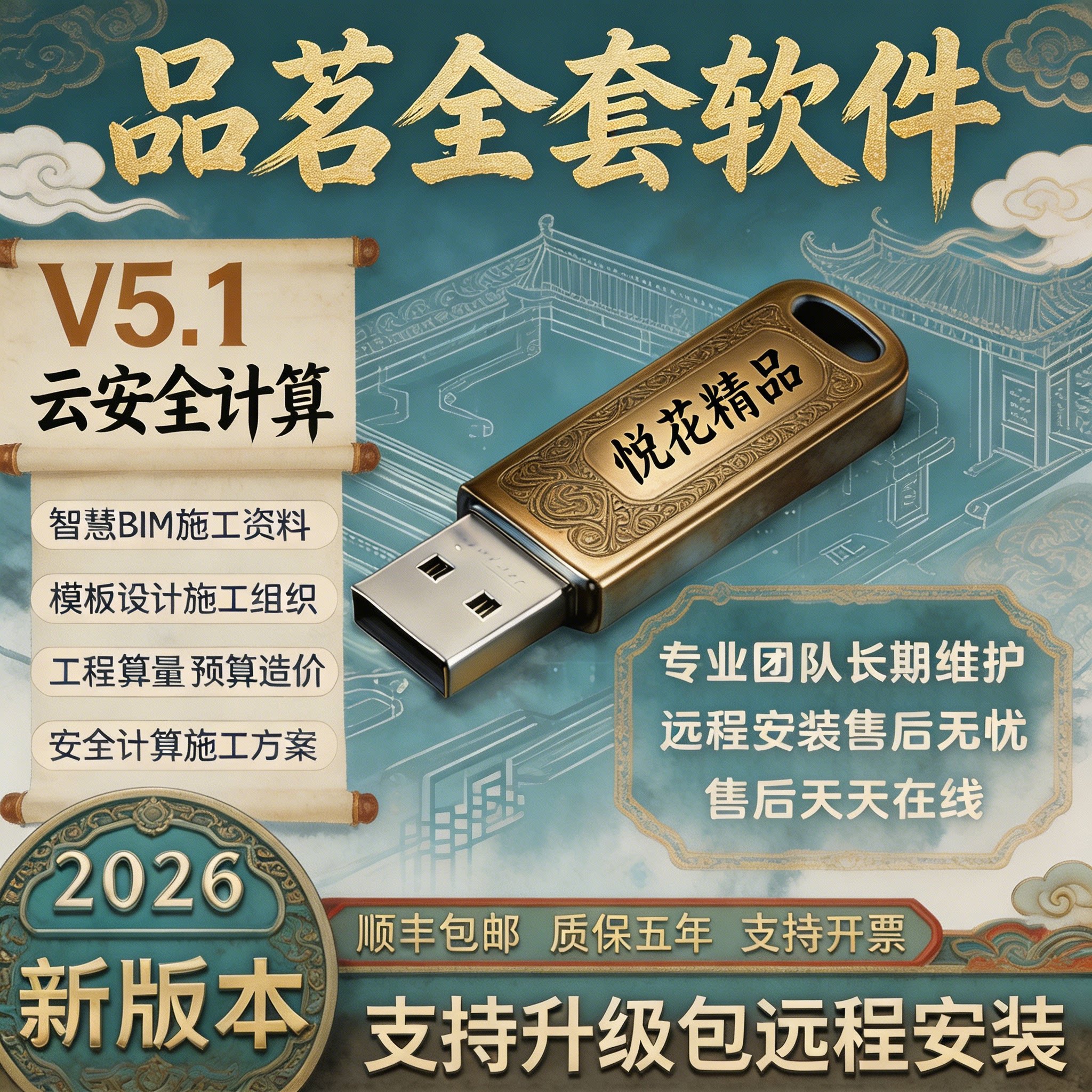 2026品茗云安全计算软件V5.1基建云安全计算施工资料场布加密锁狗建筑方案编制预算软件BIM算量进度计划标书