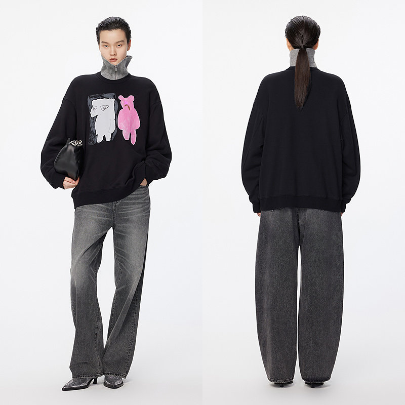 JNBY/江南布衣秋冬圆领套头卫衣女小熊图案棉质毛圈布5OA415810