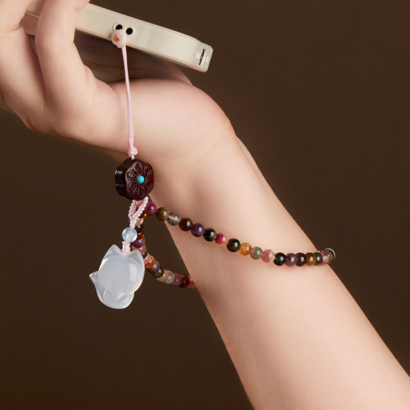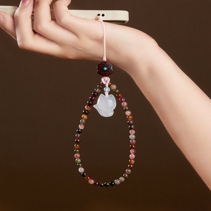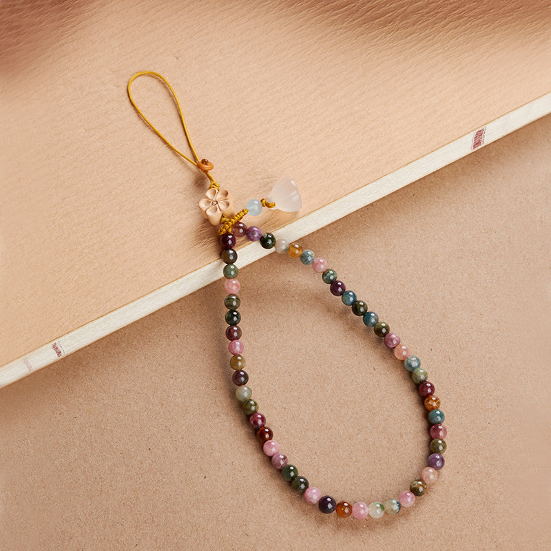 原创天然糖果色碧玺手机链挂手腕绳手机壳挂链手机挂绳链绳链条串