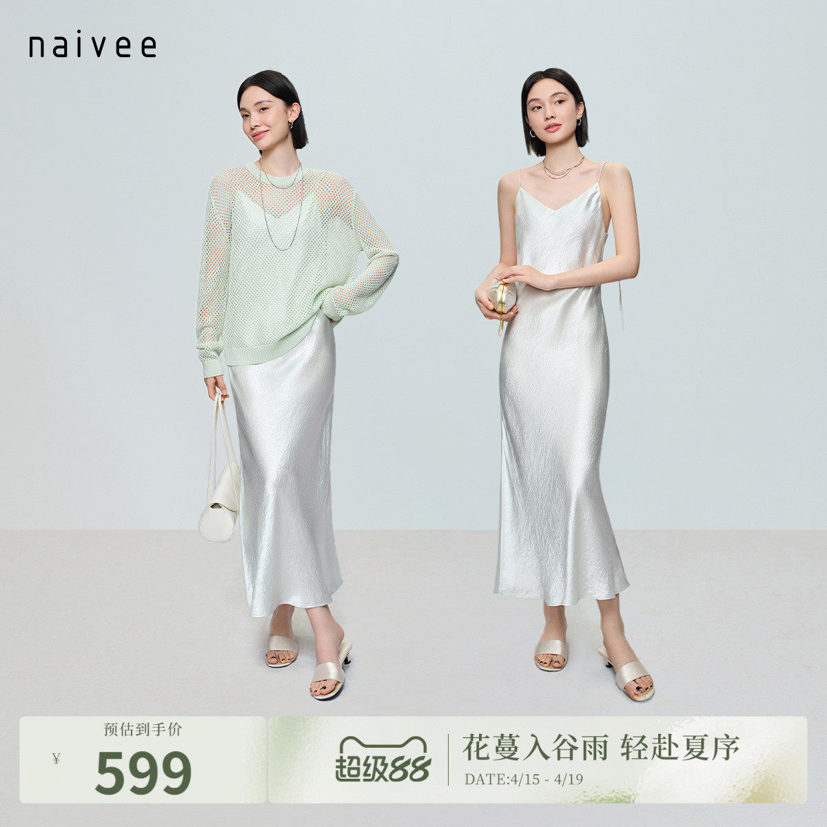 【梅子青吊带裙】伊士曼醋酸naivee26春新款斜裁连衣裙缀中式盘扣