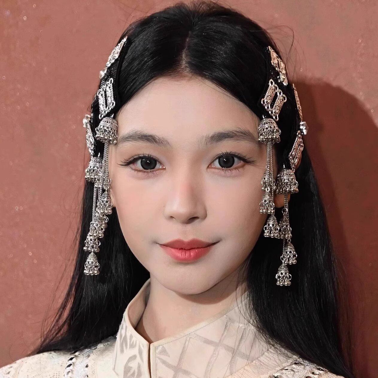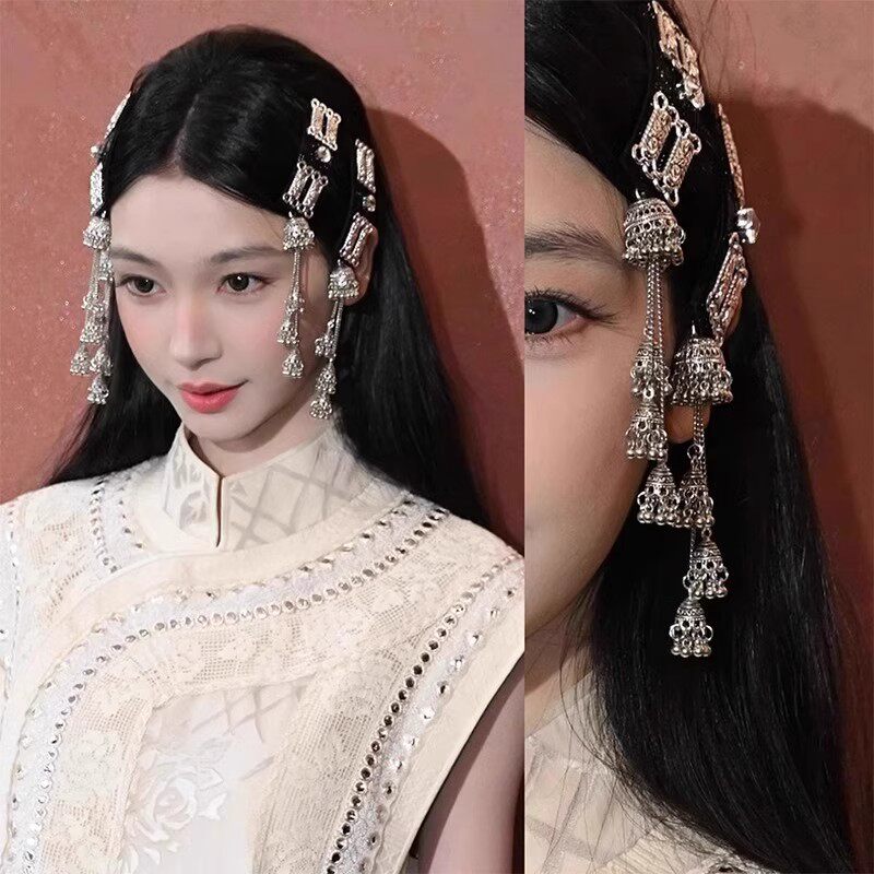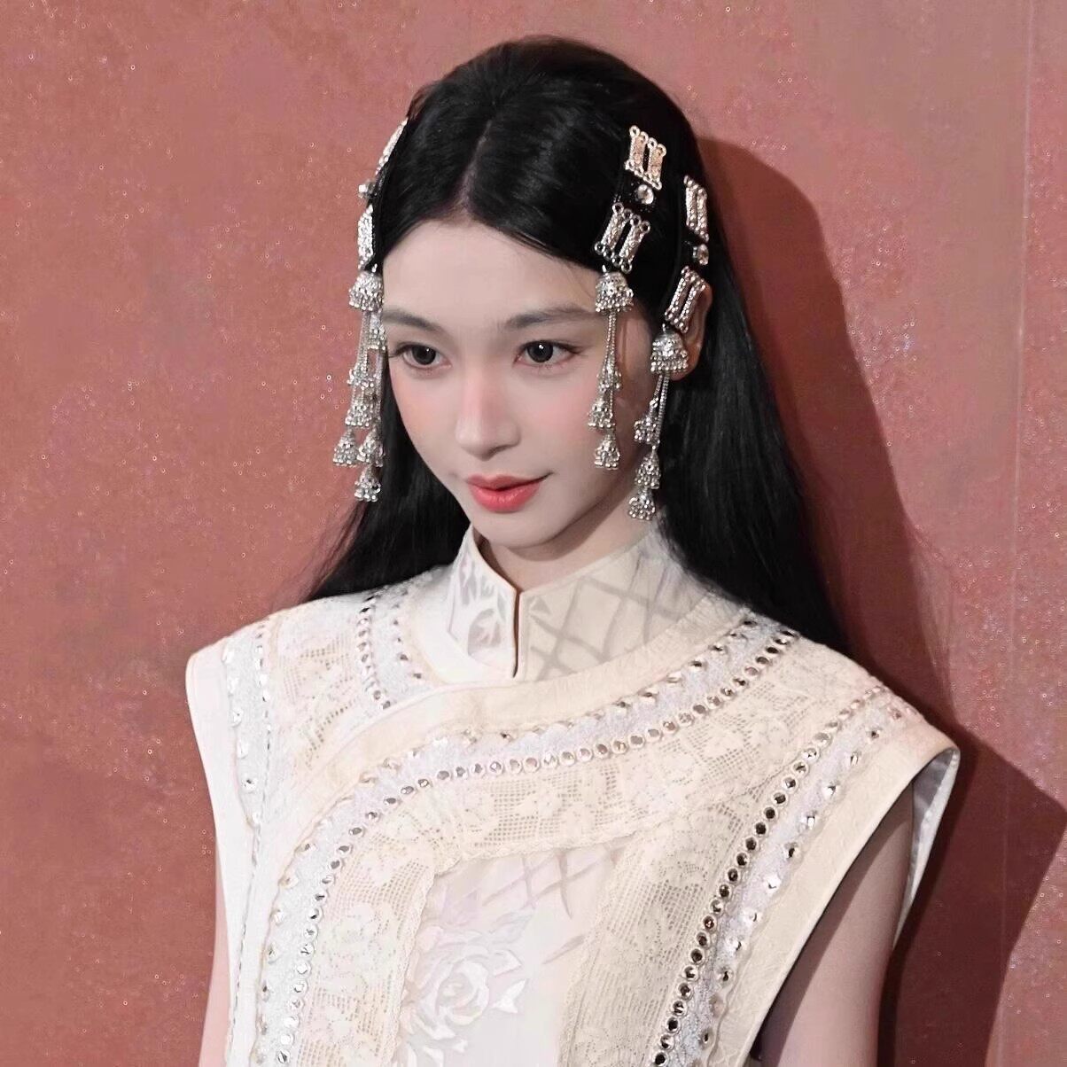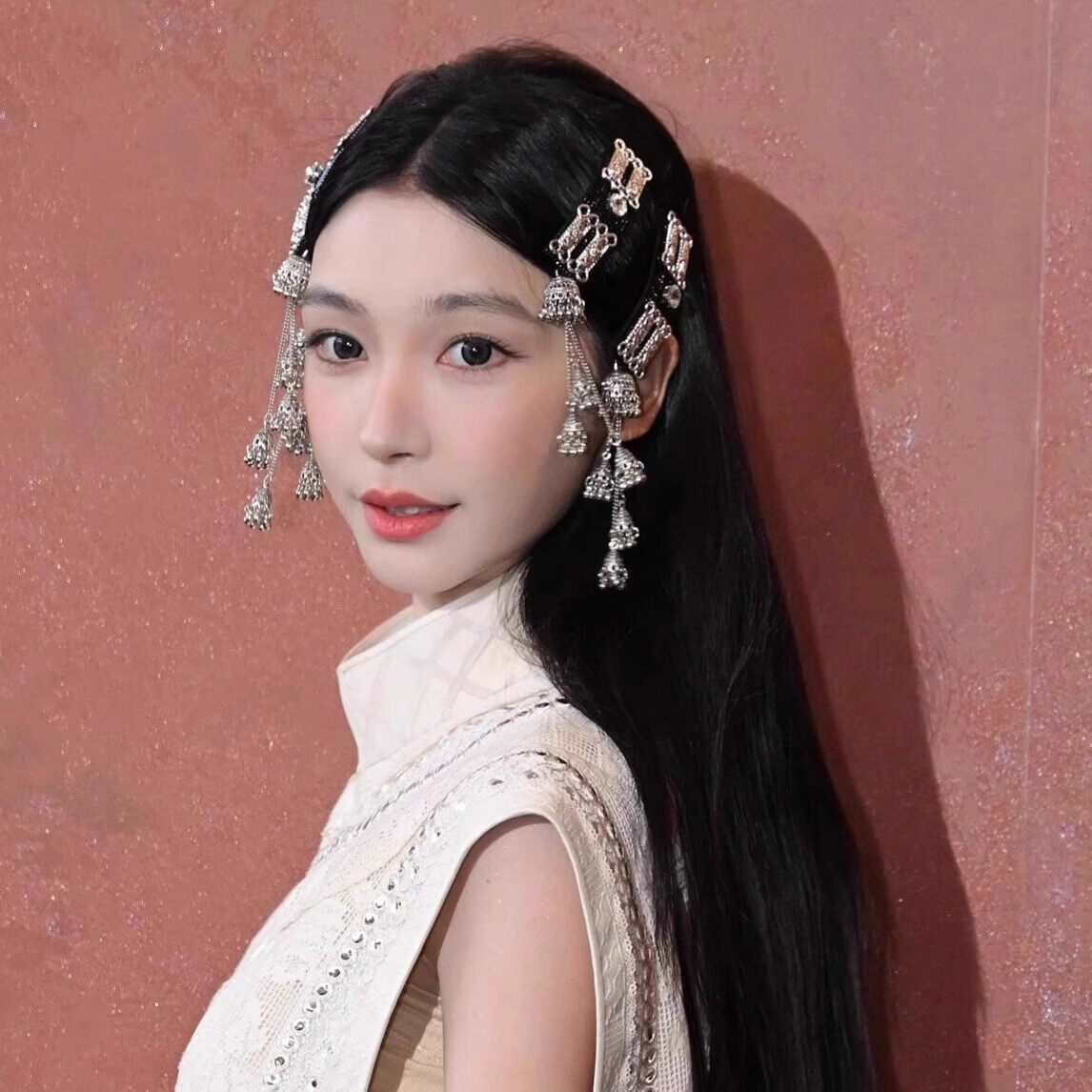 易梦玲同款银色流苏铃铛边夹发饰头饰民族风发夹刘海夹高级感发卡