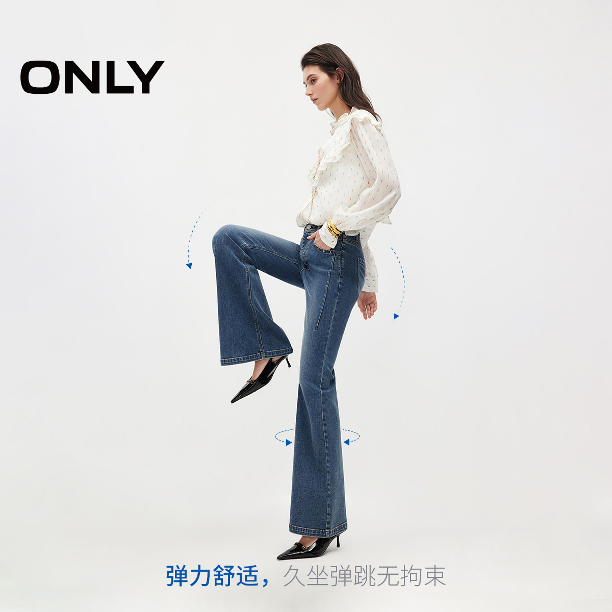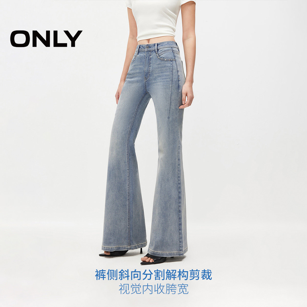 ONLY2026春季新款辣妹时髦个性铆钉点缀长裤修身喇叭裤牛仔裤女