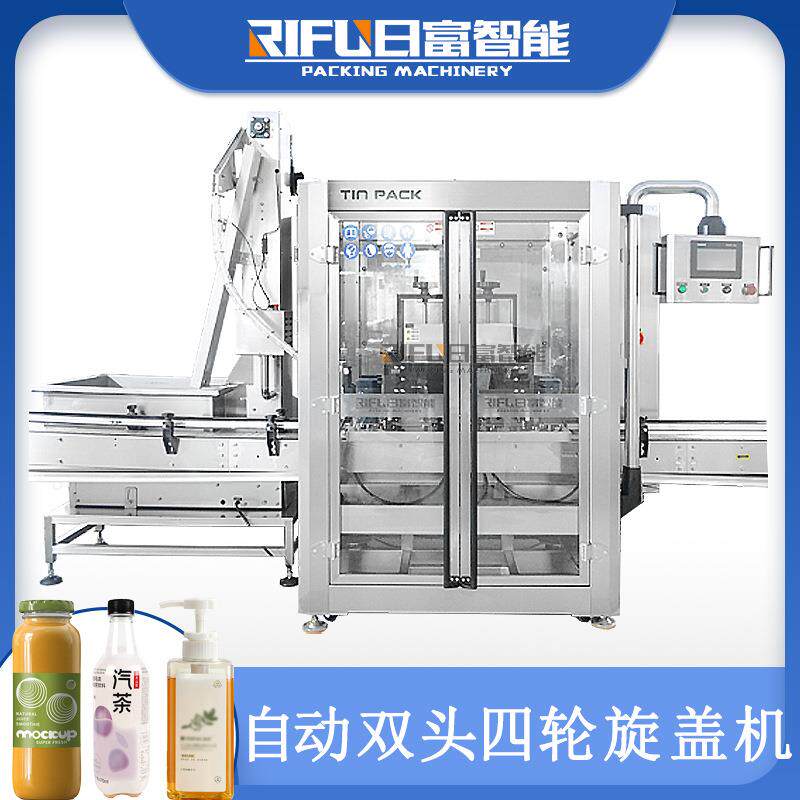 自动双头四轮旋盖机护发素沐浴露精油螺纹盖泵头盖搓盖机厂家