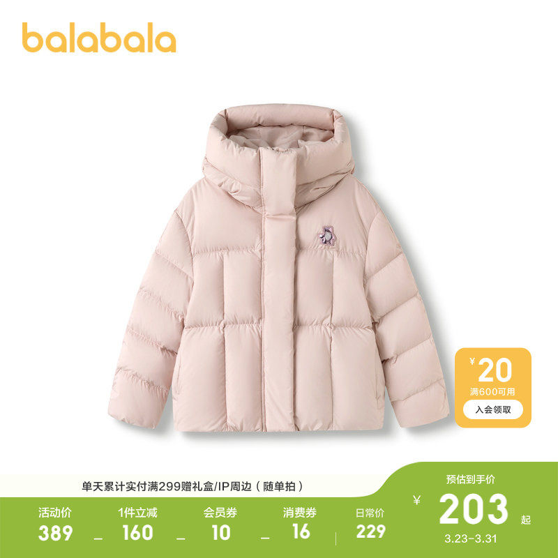 巴拉巴拉儿童羽绒服女童冬装短款连帽外套萌上衣流行舒适户外潮款