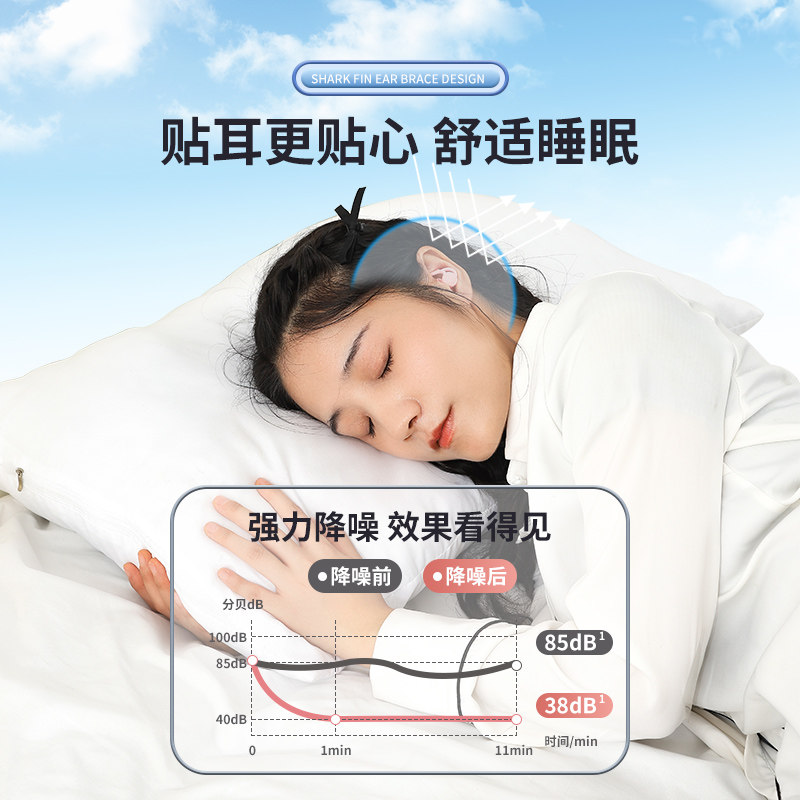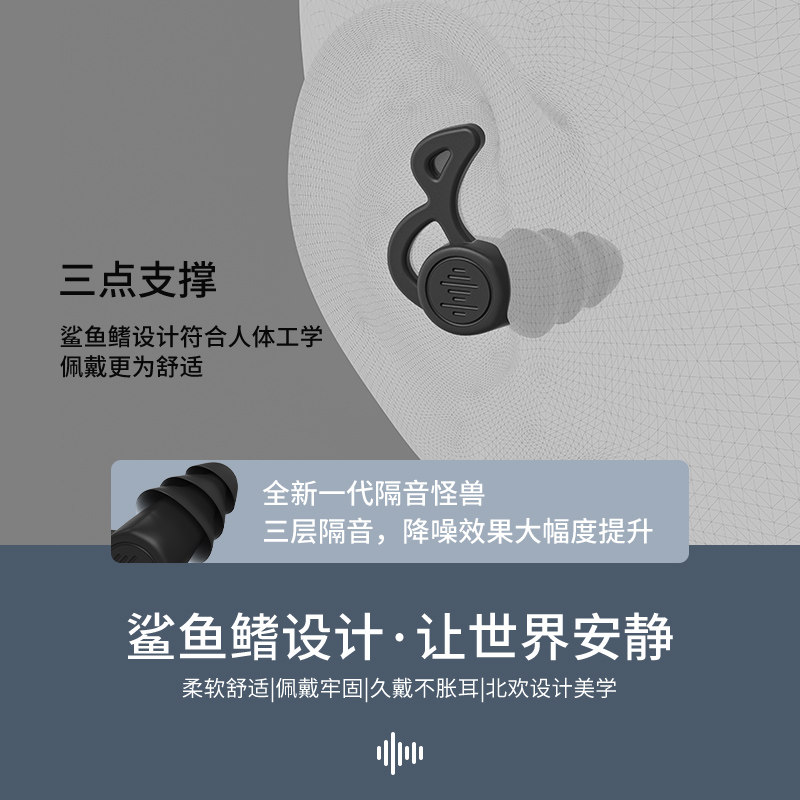 鲨鱼鳍隔音耳塞睡眠睡觉专用超级隔音可侧睡无感防噪音硅胶小耳道
