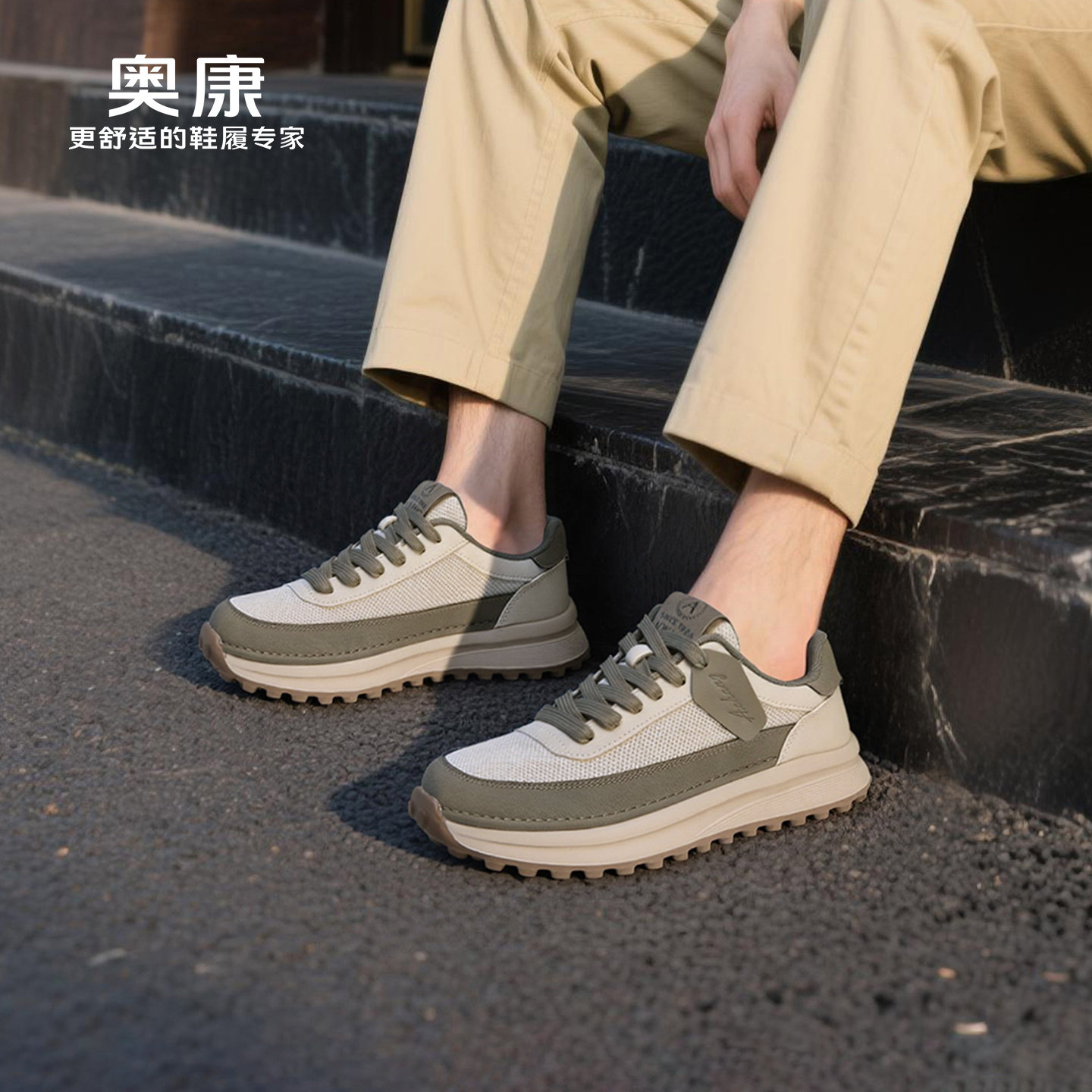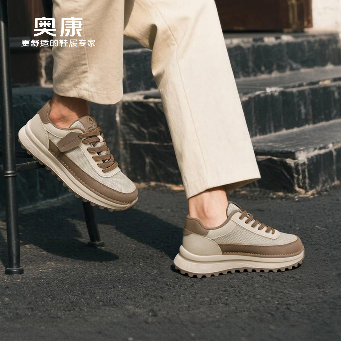 奥康 2026夏季男士潮流百搭阿甘鞋休闲运动风轻便软底通勤鞋子男W