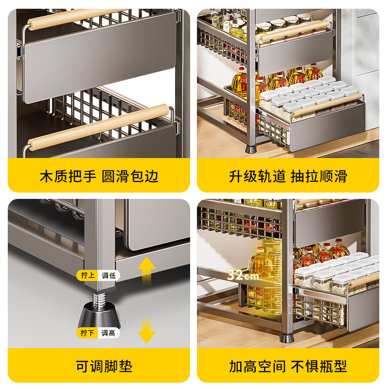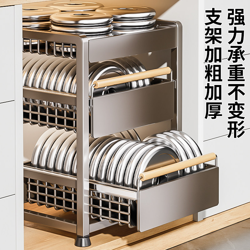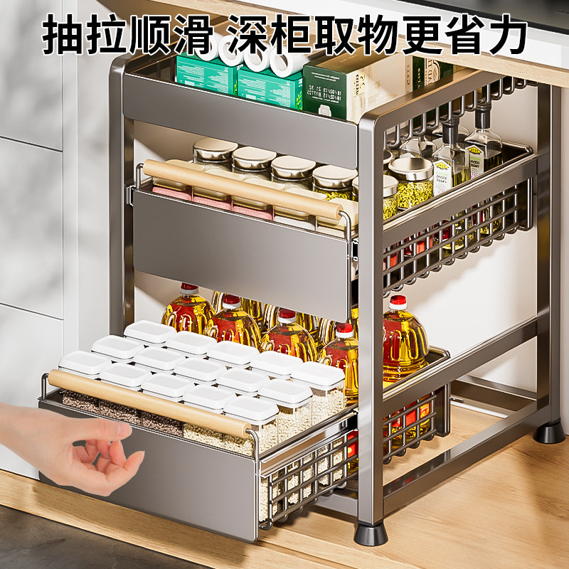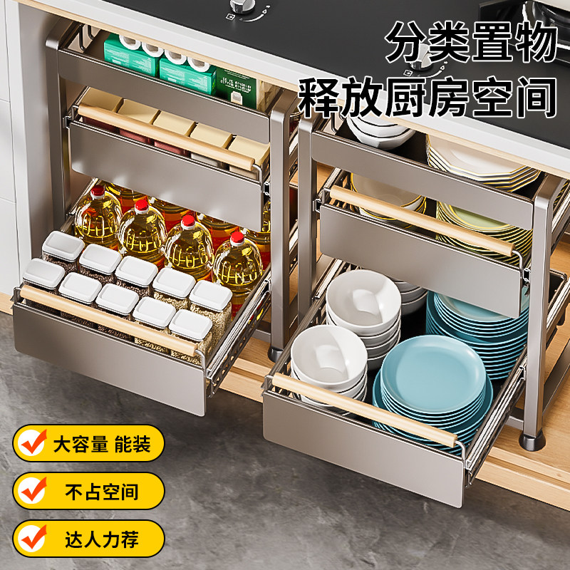 厨房柜内分层架橱柜拉篮抽屉抽拉式收纳多功能下水槽置物架子双层