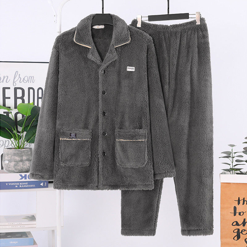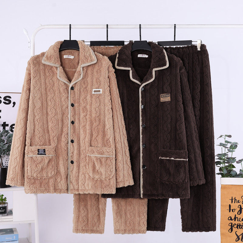 新款珊瑚绒睡衣男士秋冬款加厚套装加绒法兰绒男款冬季家居服大码