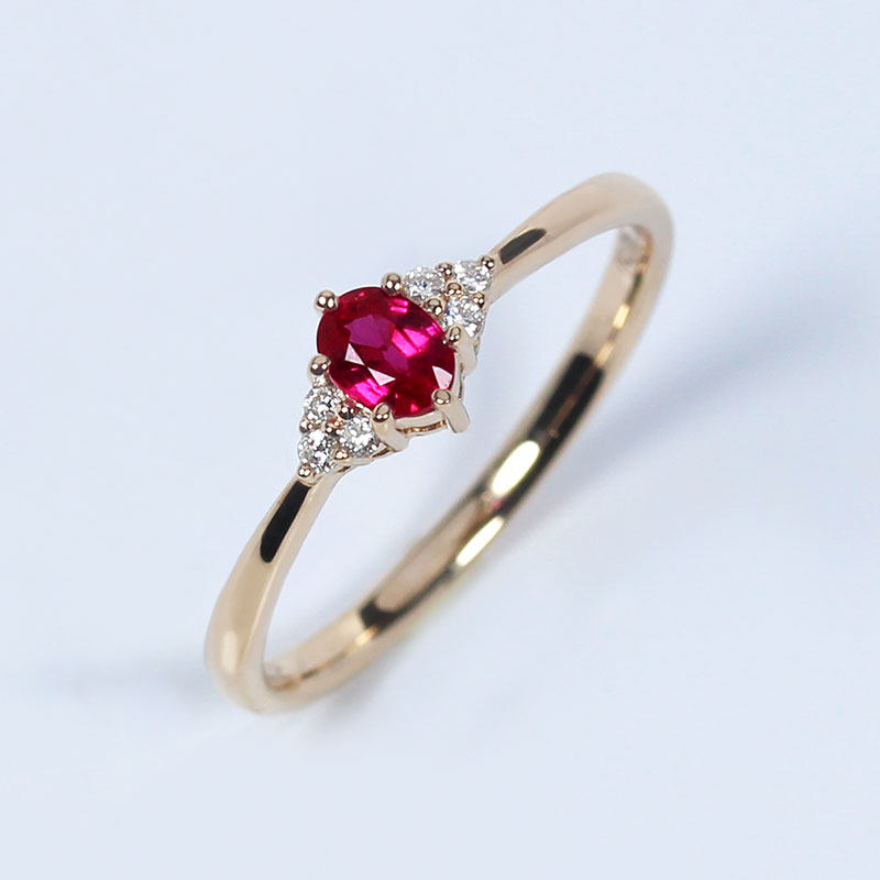 18K玫瑰金天然红宝石三生石小戒指 高火彩正红色镶钻石女款正品