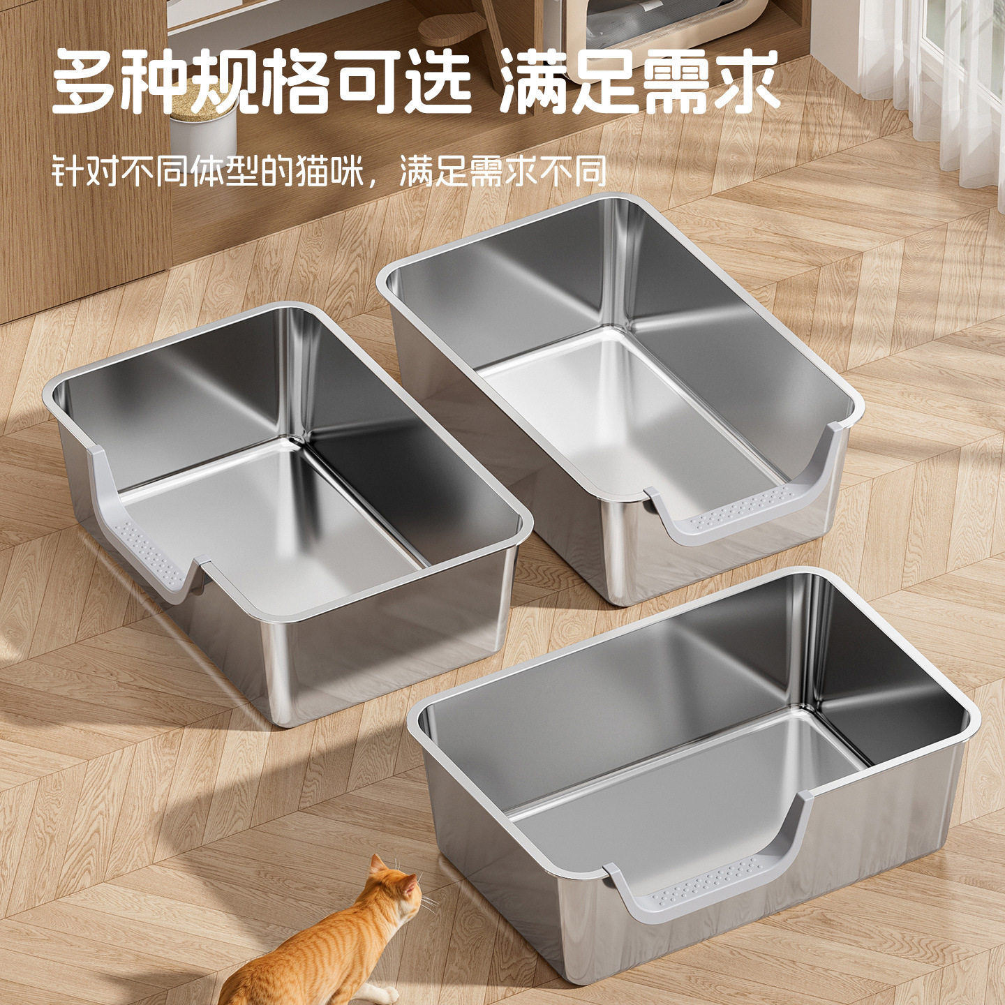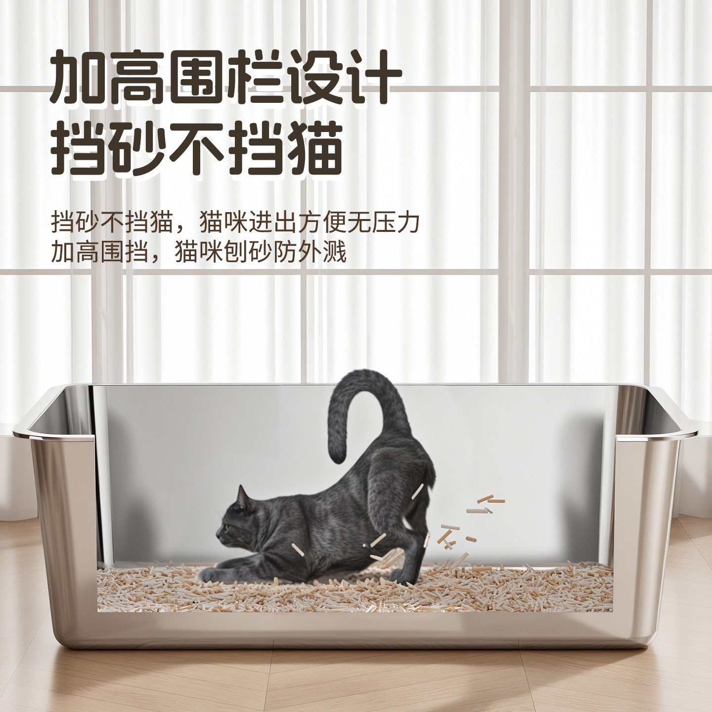 一体式不锈钢猫砂盆超大号防外溅侧开顶入式猫咪厕所跨境宠物用品