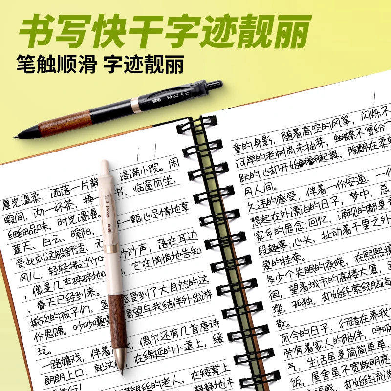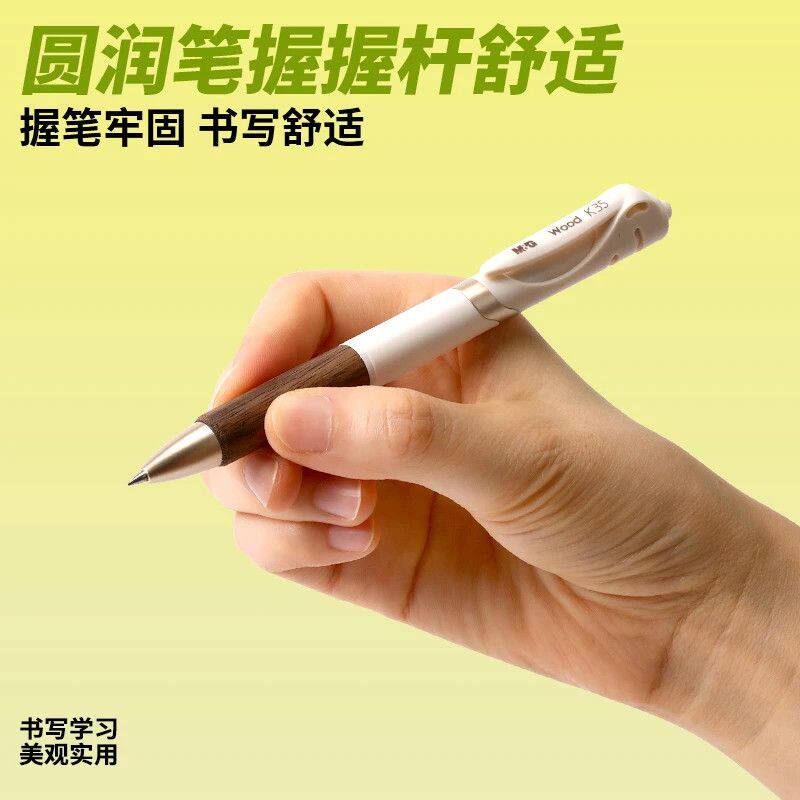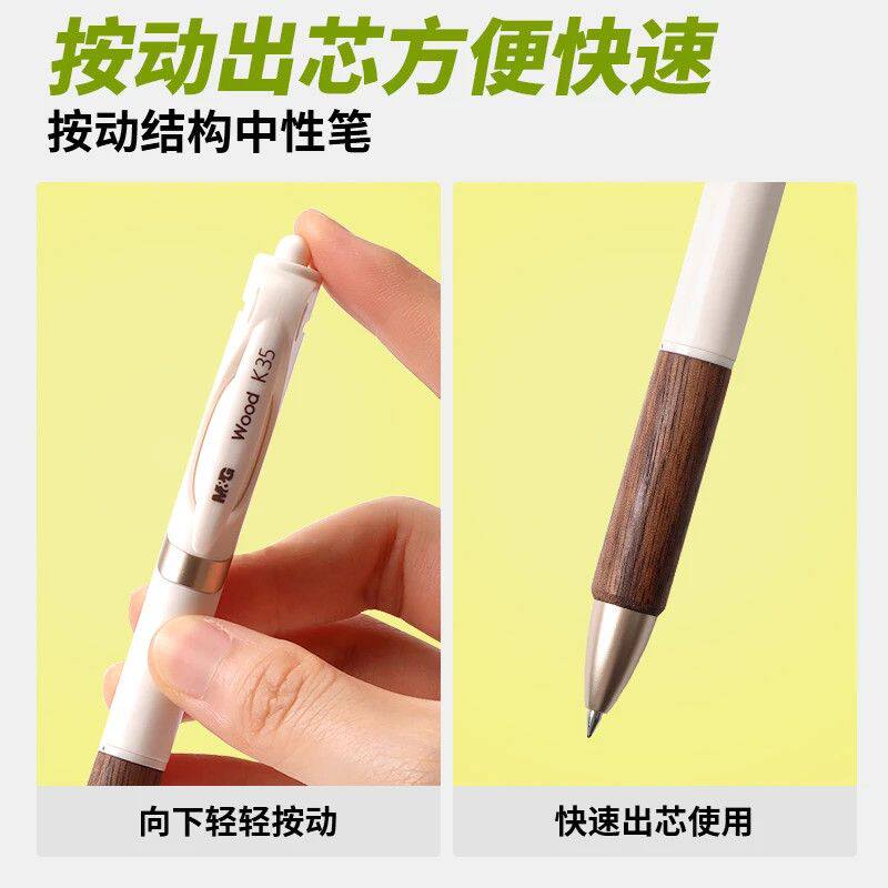 晨光K35瑞宝胡桃木按动中性笔子弹头0.5握笔牢固书写顺滑木纹理质感速干礼盒包装送礼签字笔学生用刷题笔考试