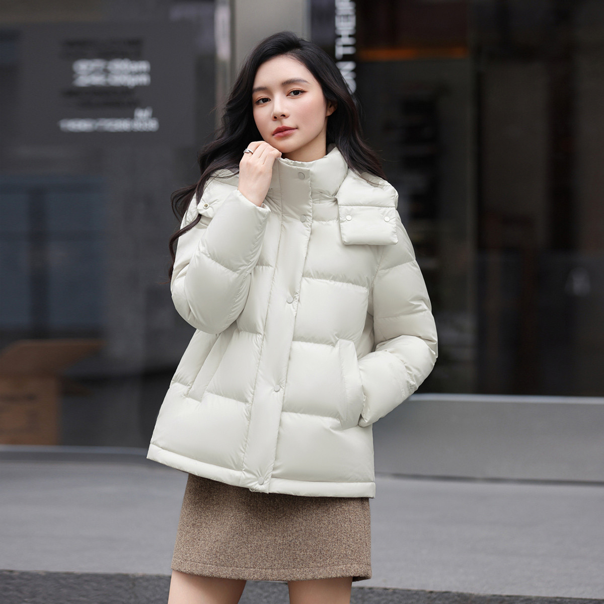 鸭鸭2025秋冬新款立领短款羽绒服小个子女冬多巴胺连帽可拆帽外套