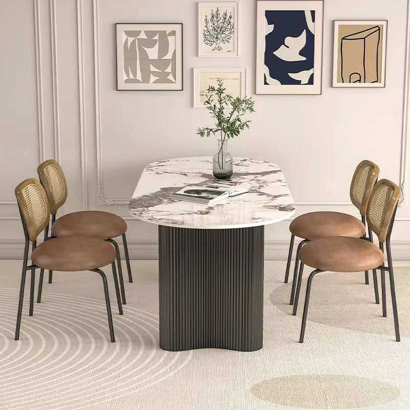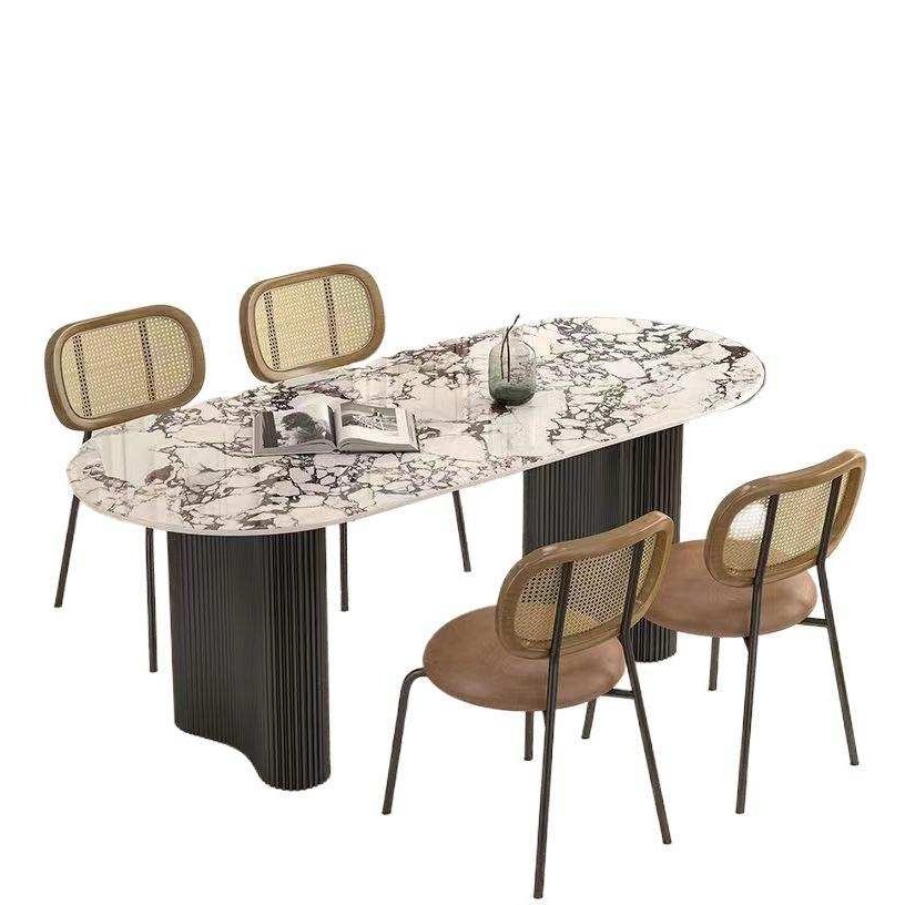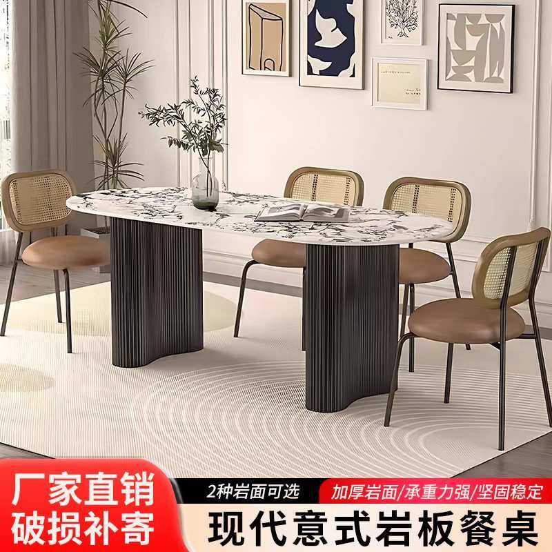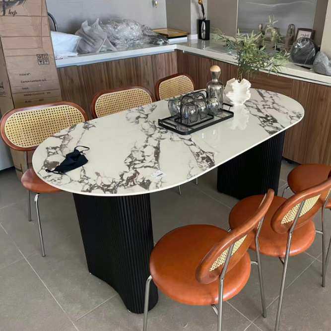 法式奶油椭圆餐桌大理石全托底板复古高级小户型家用现代轻奢饭桌