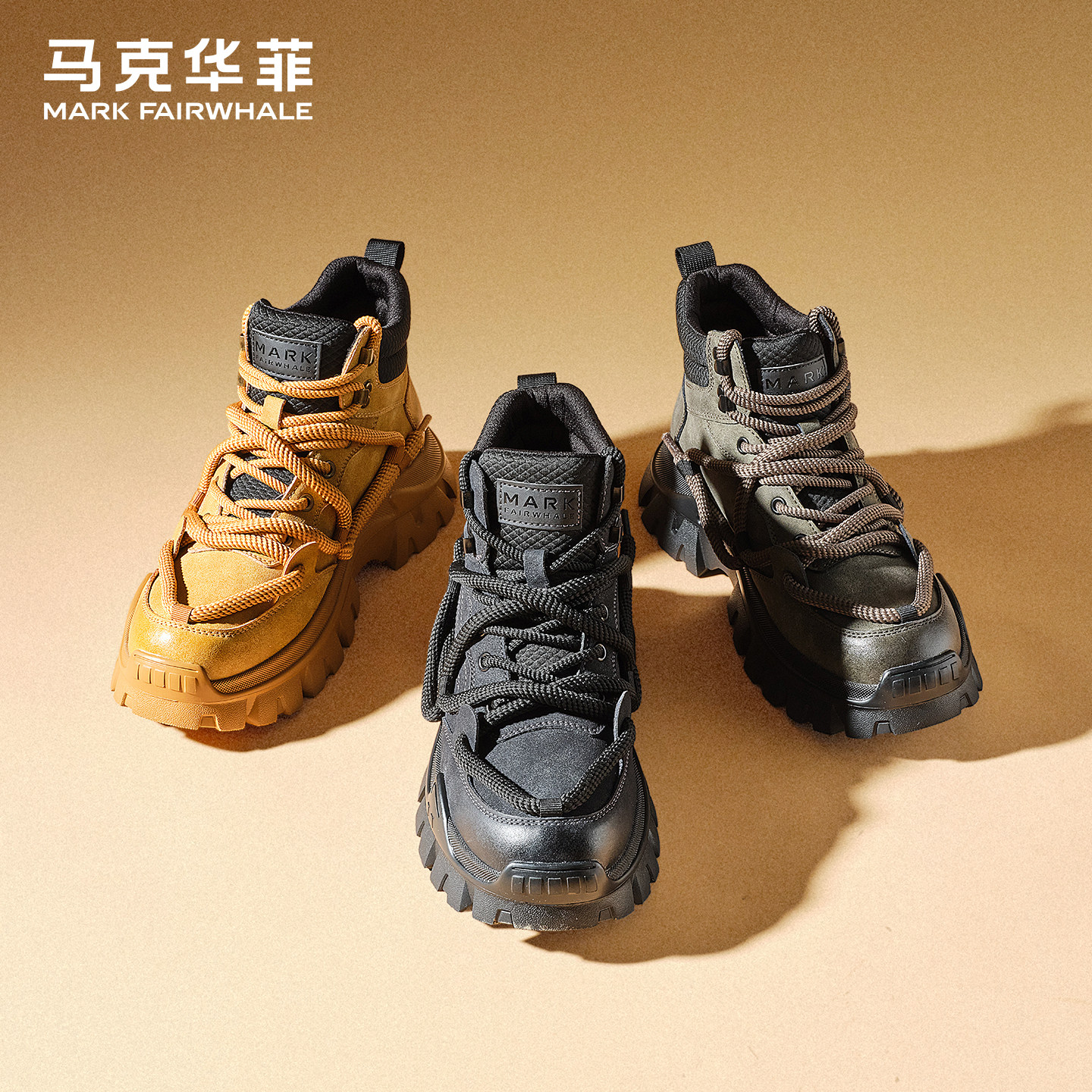 马克华菲马丁靴男款黑色加厚男鞋冬季新款增高雪地靴棉鞋男士靴子