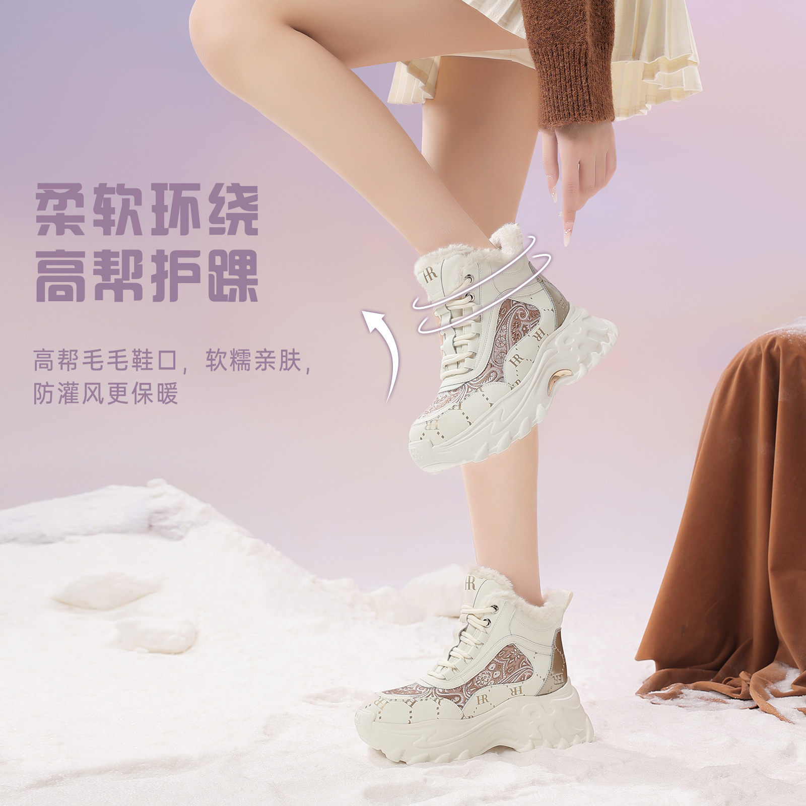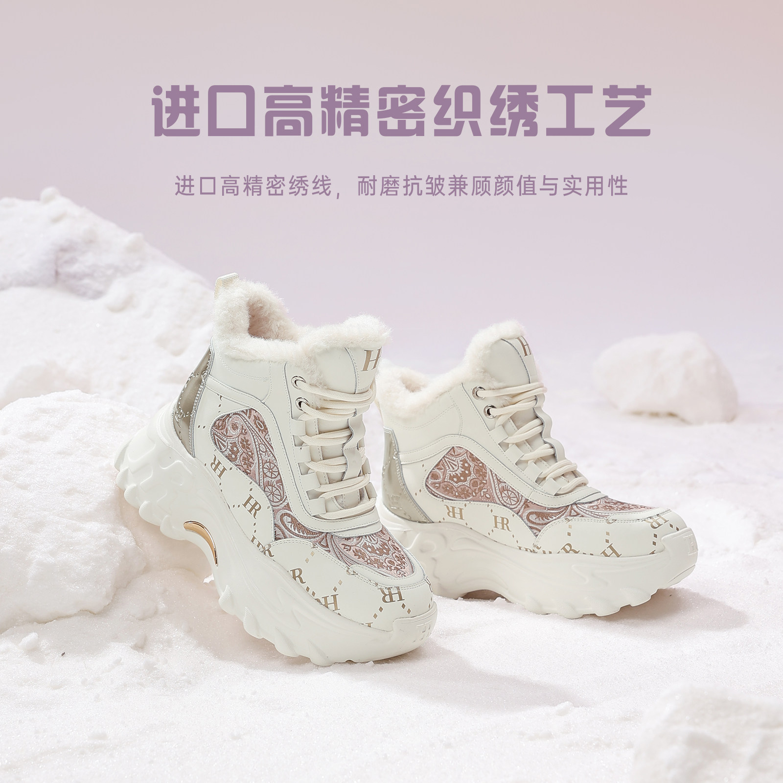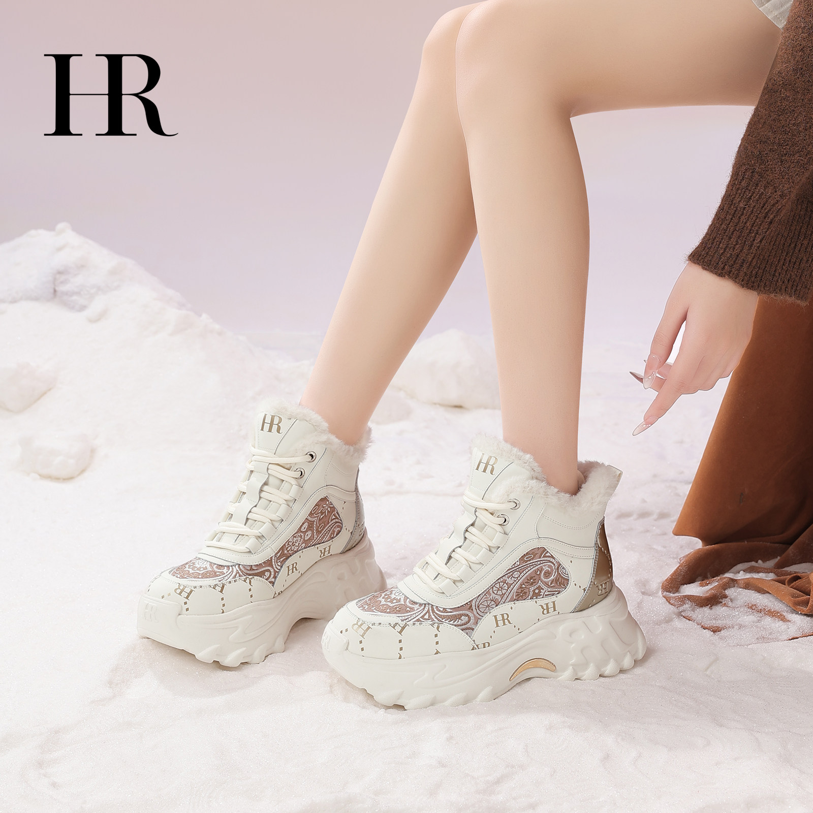 HR赫莲娜老爹鞋2026冬季新款高帮女鞋子厚底新中式加绒加厚雪地靴