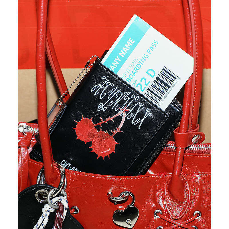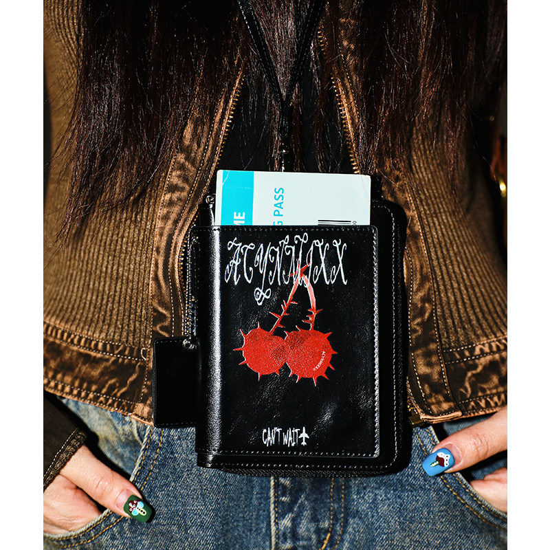 Acynmixx邪恶樱桃护照包多功能挂脖零钱包旅行证件收纳包礼物卡包