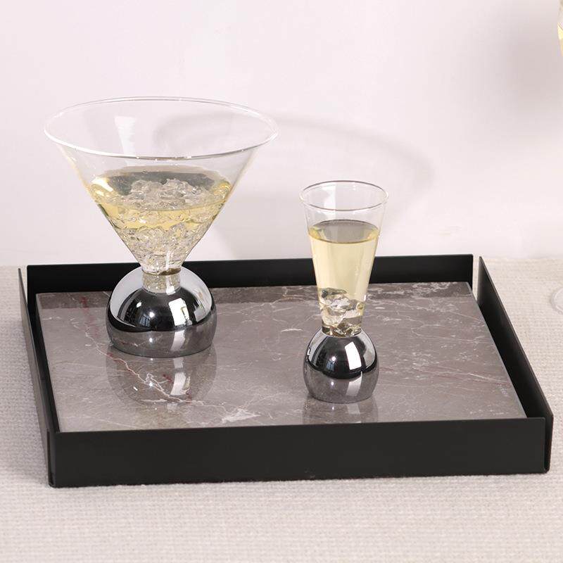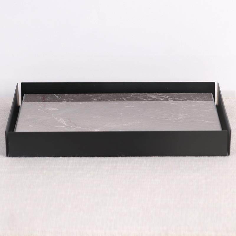 轻奢现代极简大理石方形托盘摆件样板房售楼处金属软装饰品收纳盘
