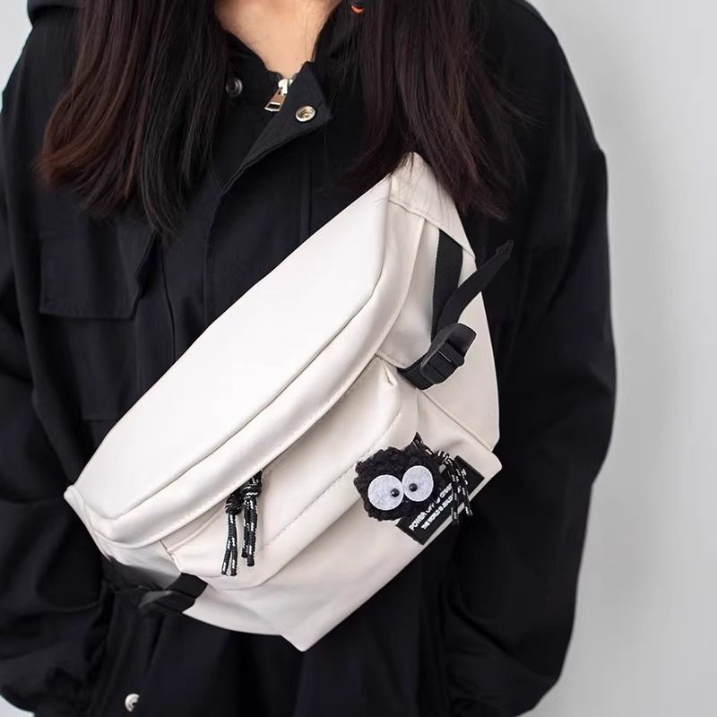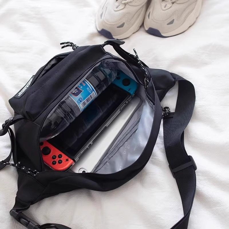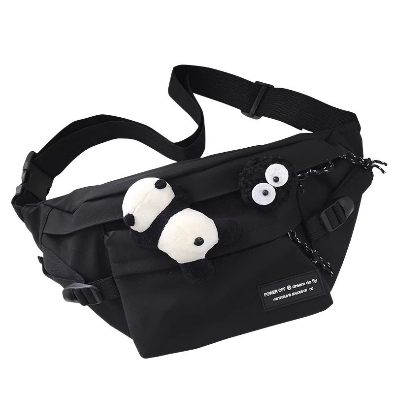 2025新款休闲斜挎包男款单肩包胸包学生包包女出行运动小腰包黑色