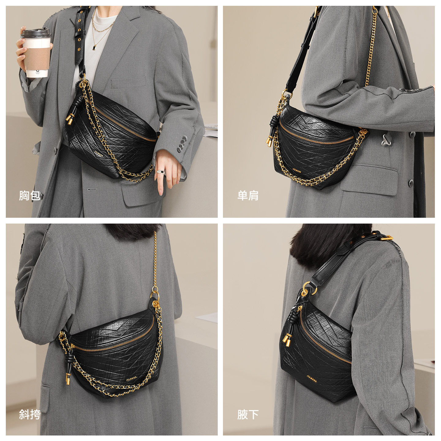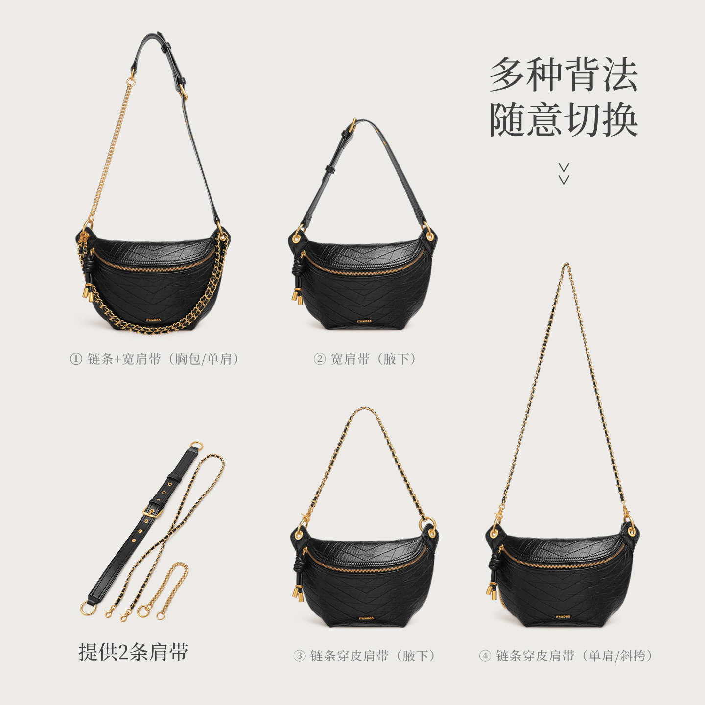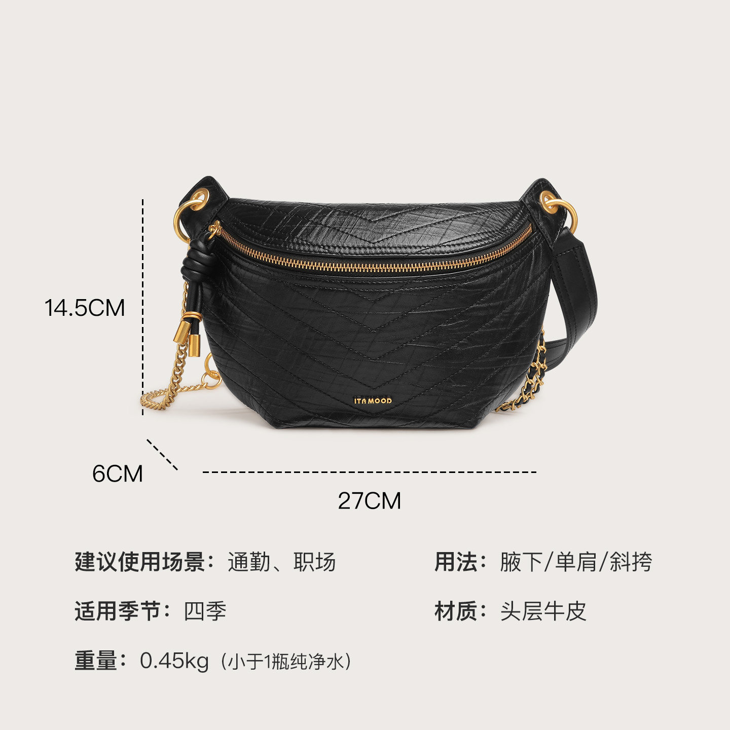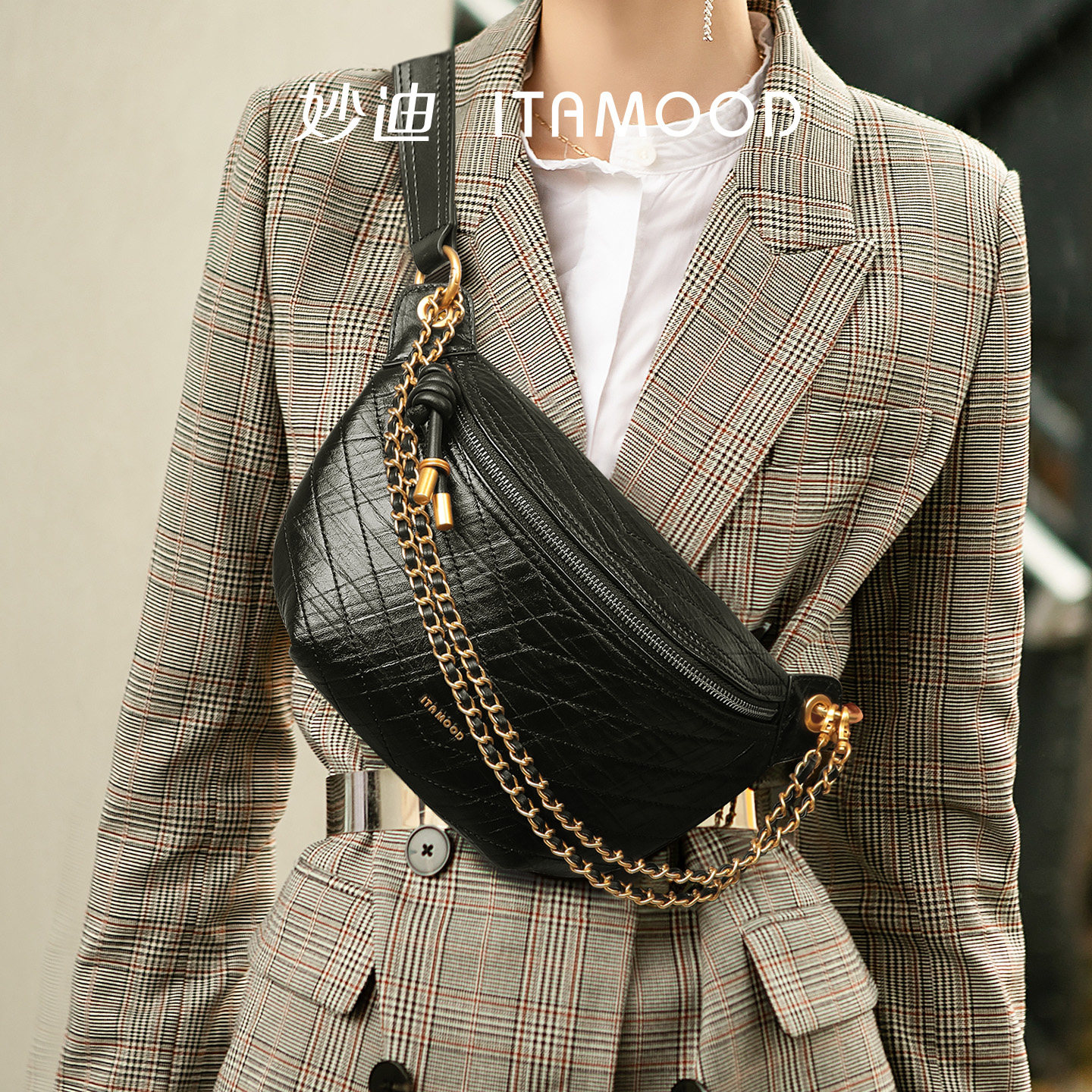 妙迪真皮链条马鞍包新款女士多功能胸包腰包小众时尚斜挎包单肩包