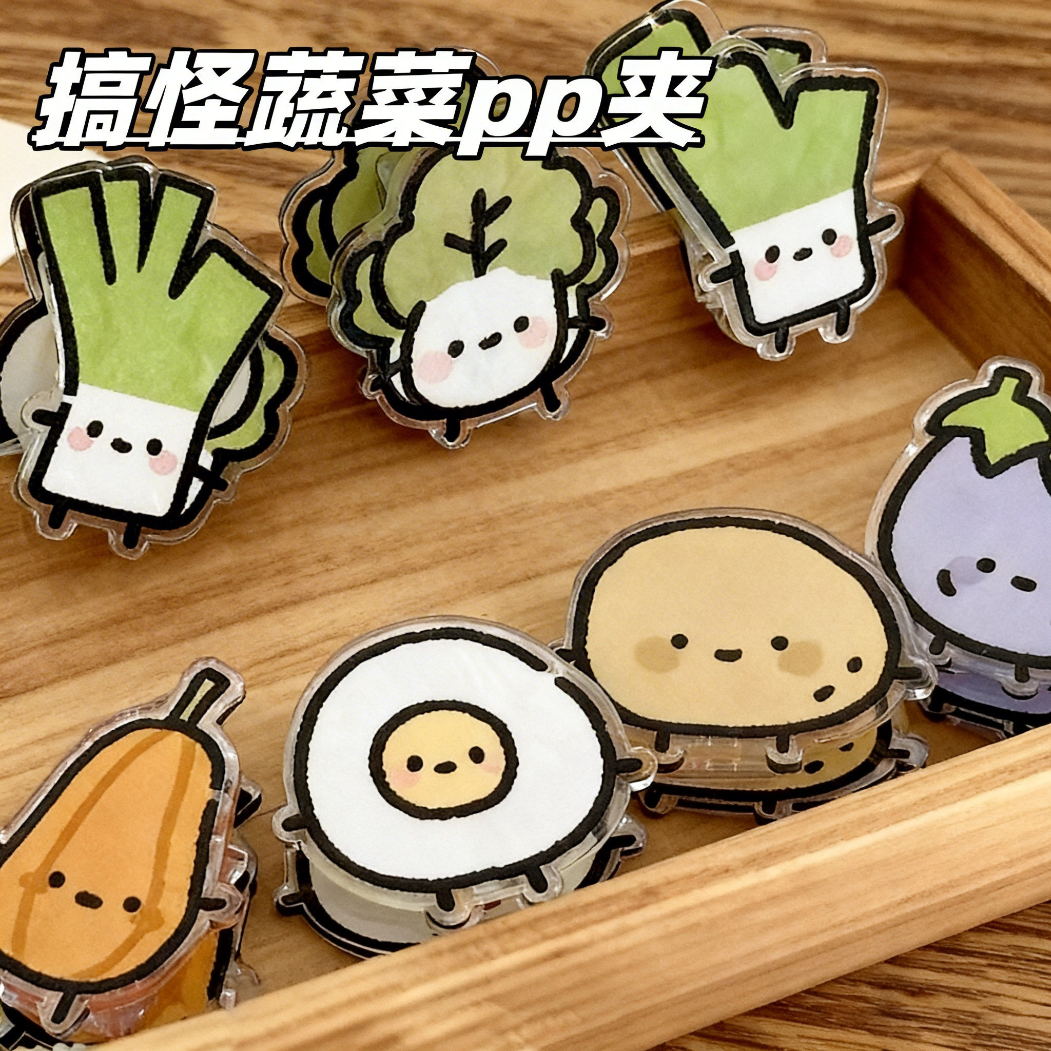 搞怪蔬菜便签夹卡通ins风高颜值双面夹亚克力PP夹收纳夹试卷夹子