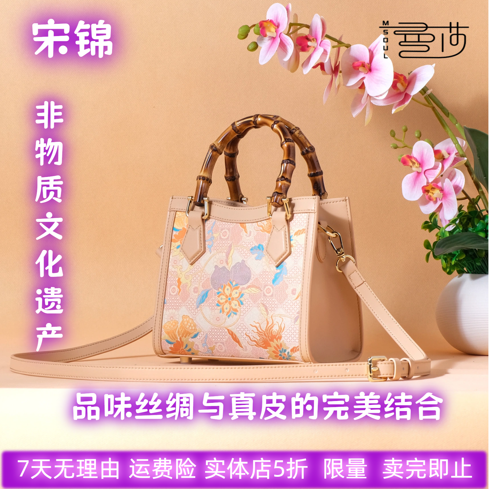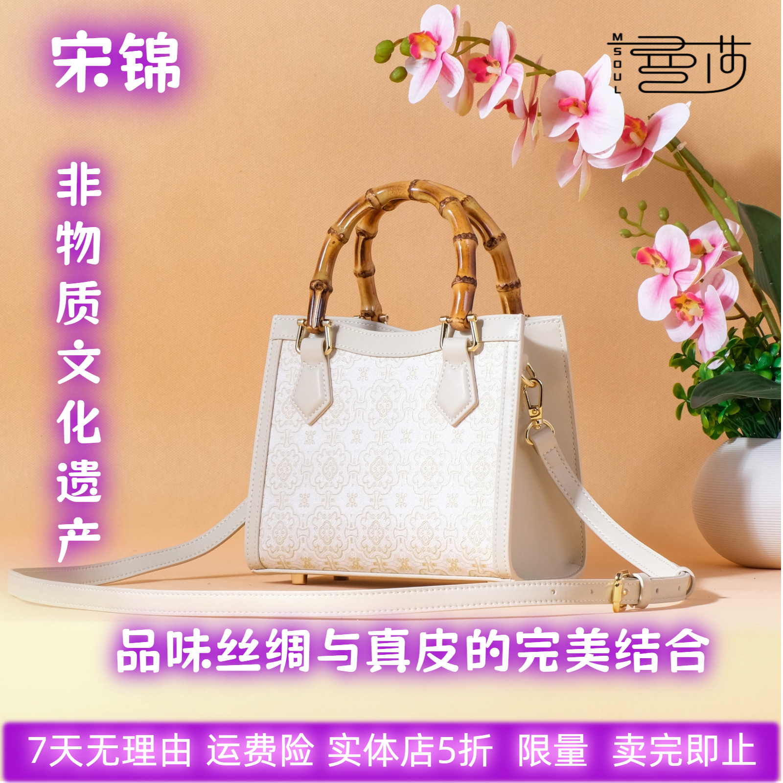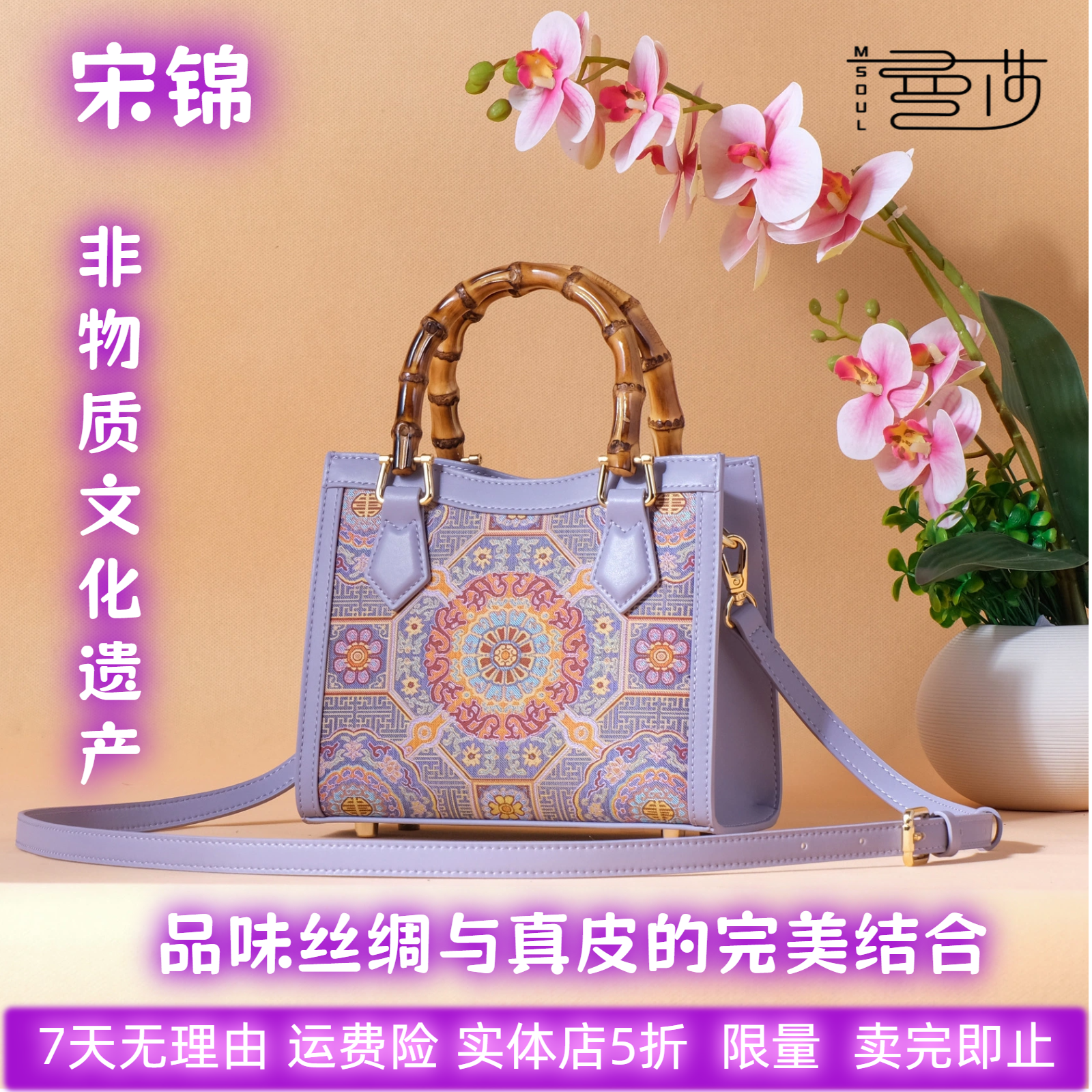 曼莎国风宋锦香云纱手提斜挎刺绣真丝牛皮新款新中式女包旗袍包包